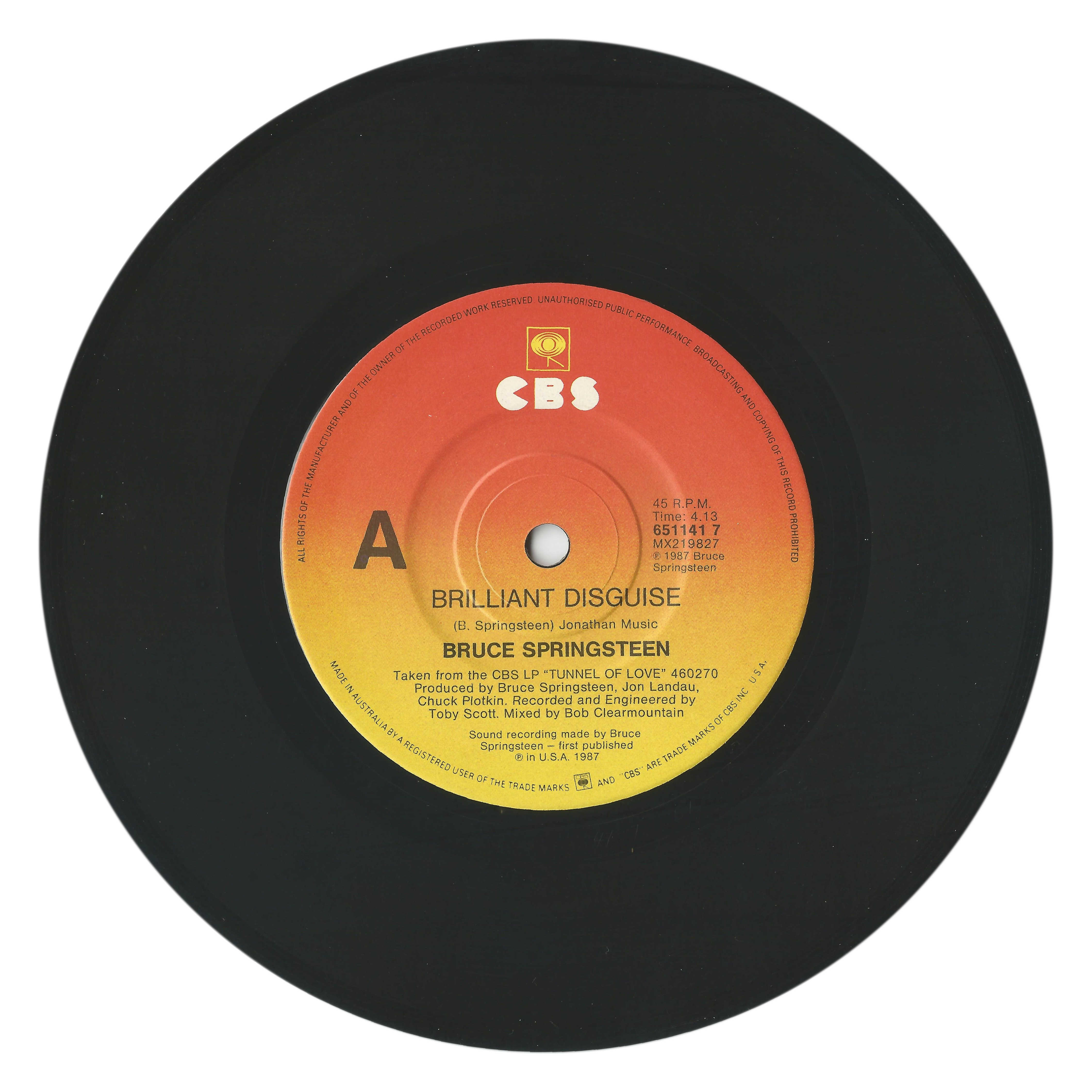 type 4: cardboard sleeve with "Made In Australia by CBS Records Australia Limited [logo] and CBS are trade marks of CBS Inc., U.S.A.". It was used for the 1985 singles.