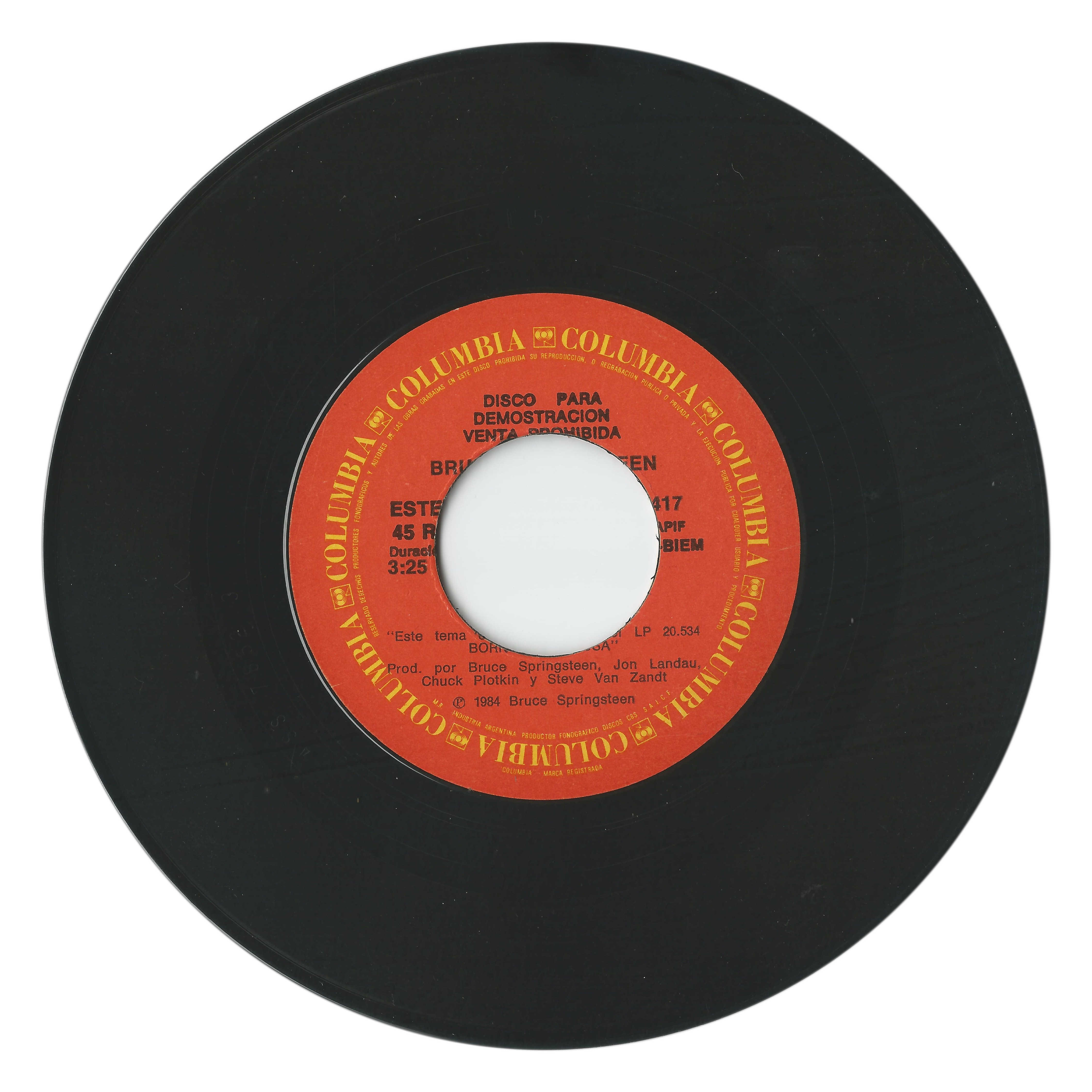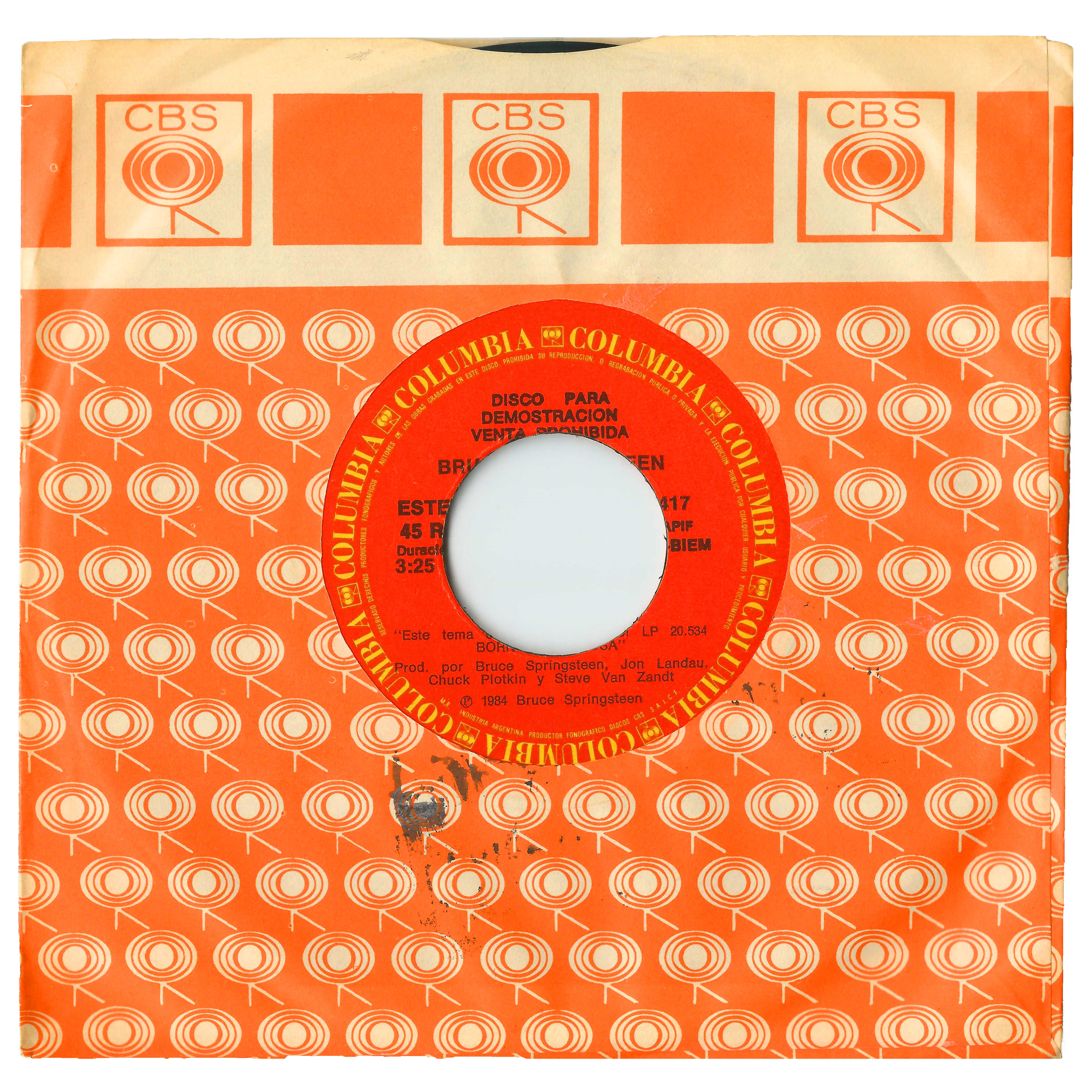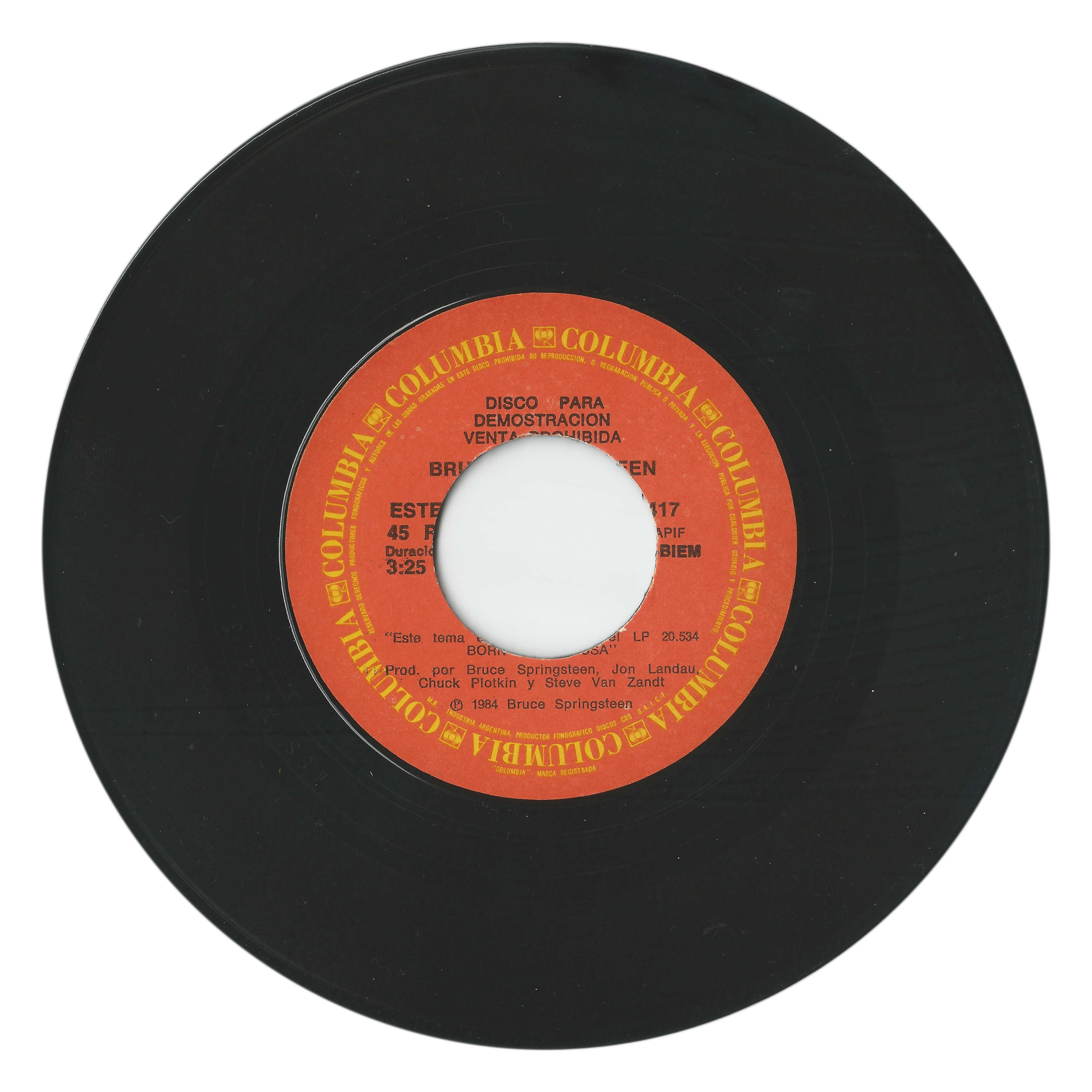 Comments: Spanish song title translations on labels , large center hole for juke box. A very rare mispressing exists with the B-side playing an unidentified latin song instead of “Cover Me”, although the label is correct