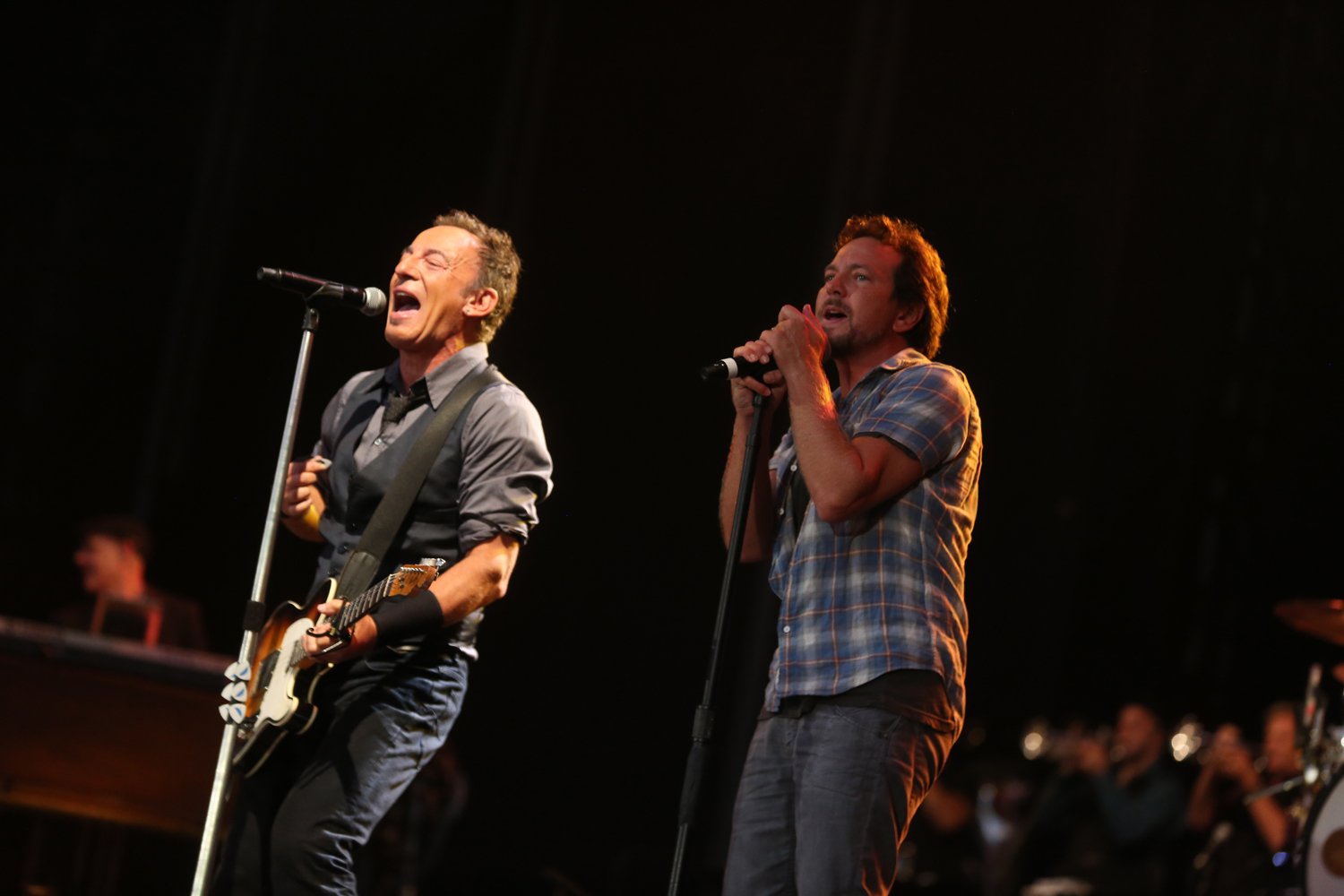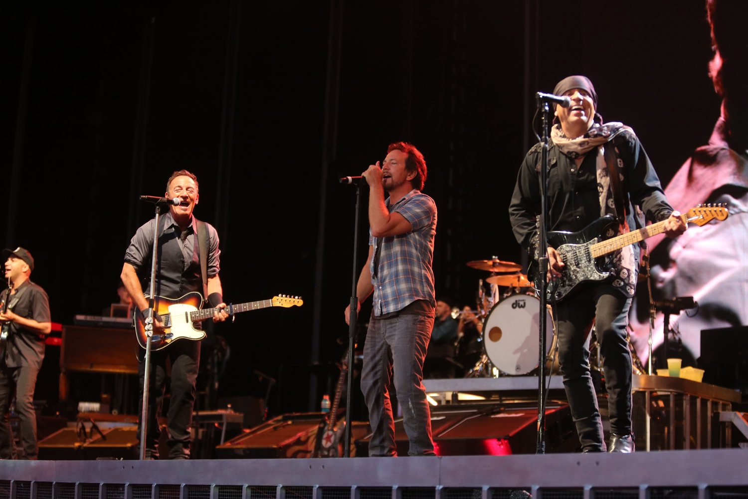 The sun was sticking around when the show started. The E Street band hit the stage and Bruce appears from the back of the drum riser. He announces a special guest, Eddie Vedder. They open with AC/DC’s “Highway To Hell” and it’s delivered with all the zeal of an encore. Next comes “Darkness On The Edge of Town” with Vedder inhabiting his verses like he wrote them. It’s a stunning collaboration and then Vedder is gone. Bruce kicks into Badlands and Jake Clemons gives the first of a series of terrific solos that are dotted through the night.