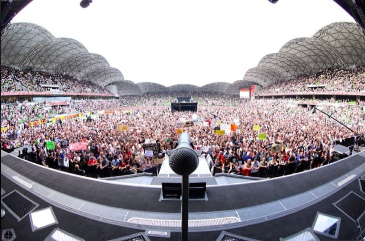 The carnival has moved east. Bruce Springsteen and the E Street Band have set up camp in Melbourne for two stadium shows. Outdoors, the opening night is sold out. Dan Sultan opened proceedings in the late afternoon. Next came reunited national treasures Hunters & Collectors. The stadium is half full as the Hunters move things up a gear with Say Goodbye. It always brings a smile to hear a few thousand blokes singing in unison, ‘You don’t make me feel like a woman anymore’. A highlight of their set was the anthem, “Throw Your Arms Around Me” with its’ adjusted lyrics which now highlight the plight of asylum seekers.