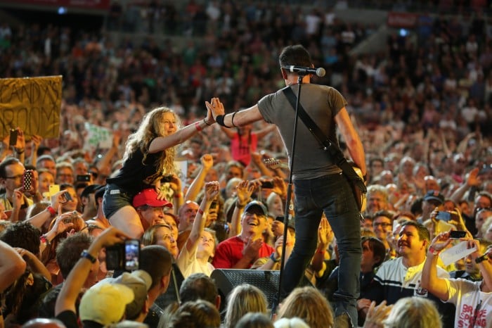 Running the gamut of his career, Bruce then reached for more contemporary material playing “Wrecking Ball” and “Death To My Hometown” alongside two tunes from his current High Hopes album: “High Hopes “itself and “Just Like Fire Would“. The latter, now enjoying radio play in Australia, has caught alight with fans.