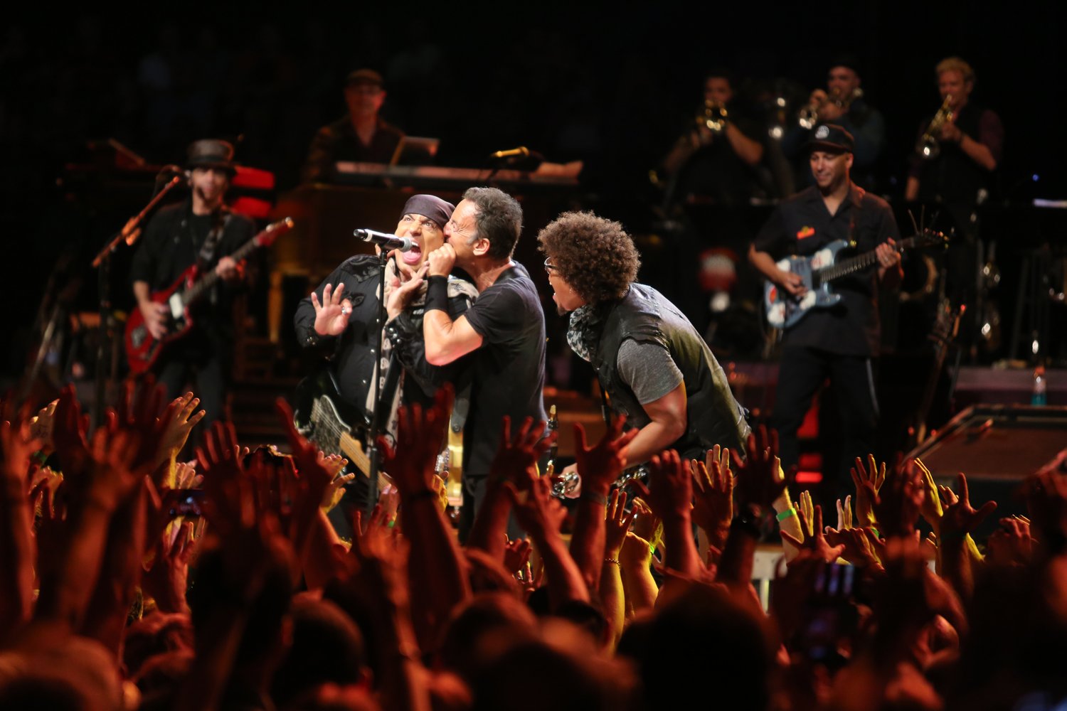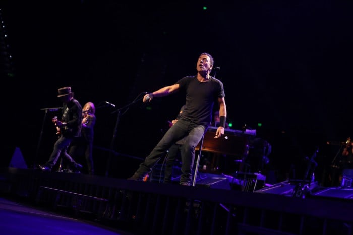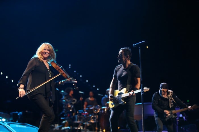 Let’s go back to the beginning. The show starts with the stage in darkness and Bruce is singing the opening lines of the Bee Gee’s disco hit Stayin’ Alive. For a moment you wonder if he’s going to deliver it as a bare bones slice of blue eyed soul, but then the band kick in, the lights are up and the party has started. Putting heart and soul into the lyric, Bruce sounds terrific, while Curtis, Cindy and Michelle are the physical manifestation of soul heaven. While the horn section – well, tonight they’ve got more a little swagger, and they play it out multiple times during the course of the evening. But… that’s not all. Adding a sweet topping are an eight-piece string section. The results are sublime.