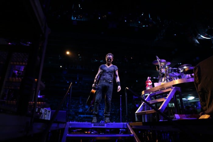 The house lights are almost up and Bruce Springsteen is alone, on stage, singing Thunder Road. He’s taken the verse melody on a subtle change of route and now the capacity house are singing the chorus in unison. The final wave of applause hits the performer and he passes his harmonica brace to a fan in the first rows. It marks the end of an extraordinary night and an extraordinary Australian tour. Tonight, in Brisbane, Springsteen shows, again, that he’s not prepared to allow anything about his set list to become rote.