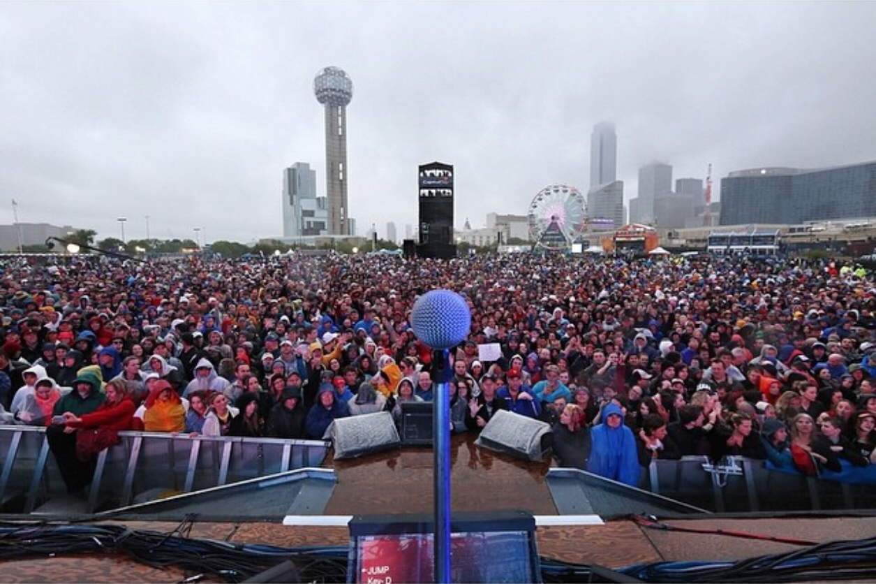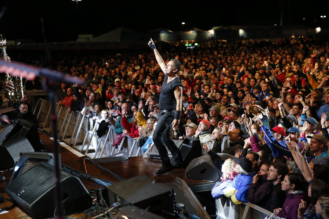 The crowd, the first to see an entire Springsteen concert in the states since 2012, enjoyed “Jump,” but many were there to see if this Springsteen guy lived up to the hype. He did. Granted, the audience wasn’t as large as hoped for or even expected, since rain poured off and on from the time the gates opened until it was nearly time to go home. But the audience still looked impressive on the large field where Reunion Arena once stood.