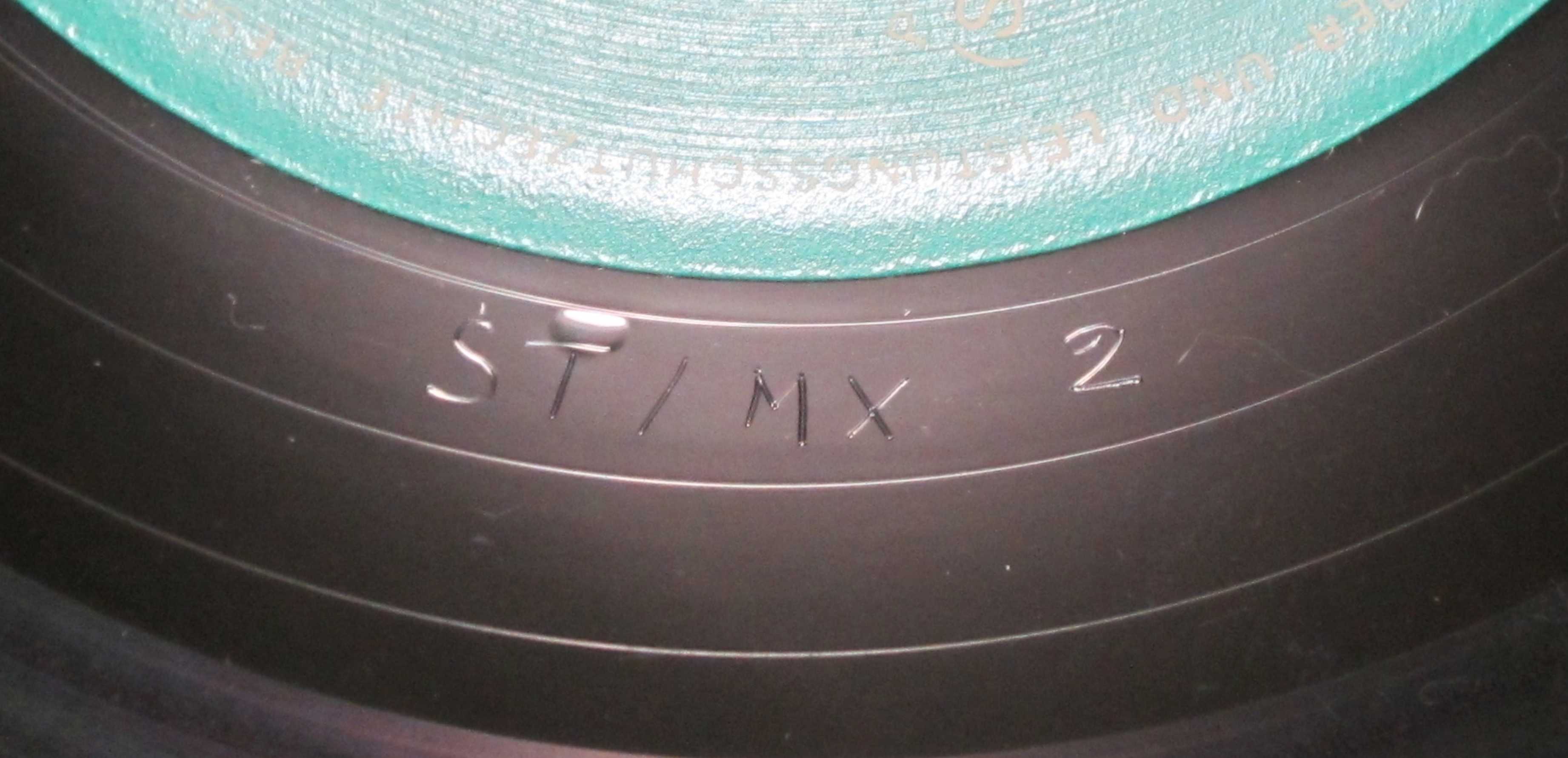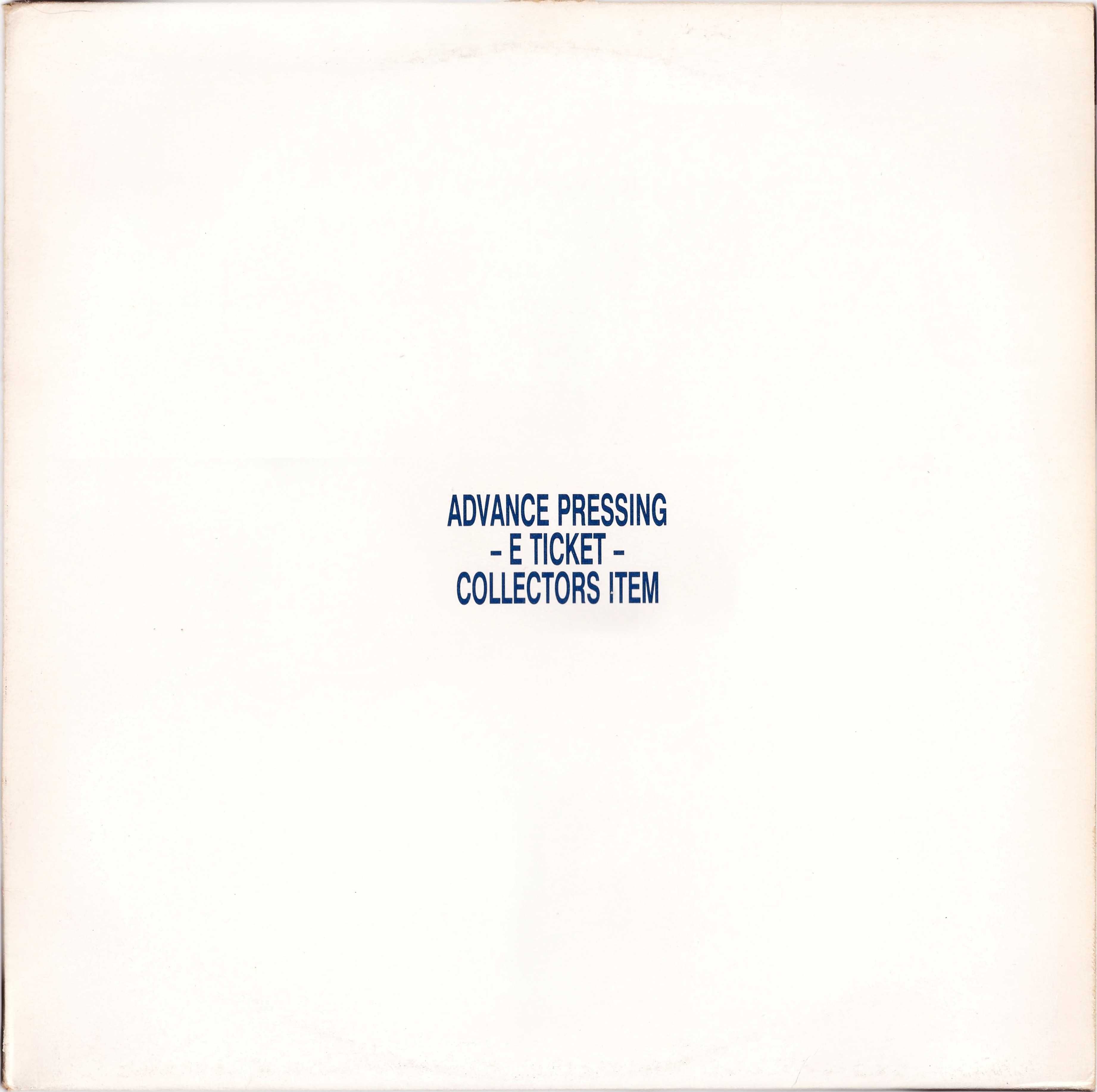 At the end of the 80s, two different copies were reissued, one with white anonymous cover with the writing "Advance Pressing - E Ticket - Collectors Item" printed in the center, green/white Head labels in black vinyl and ST/MX matrix .