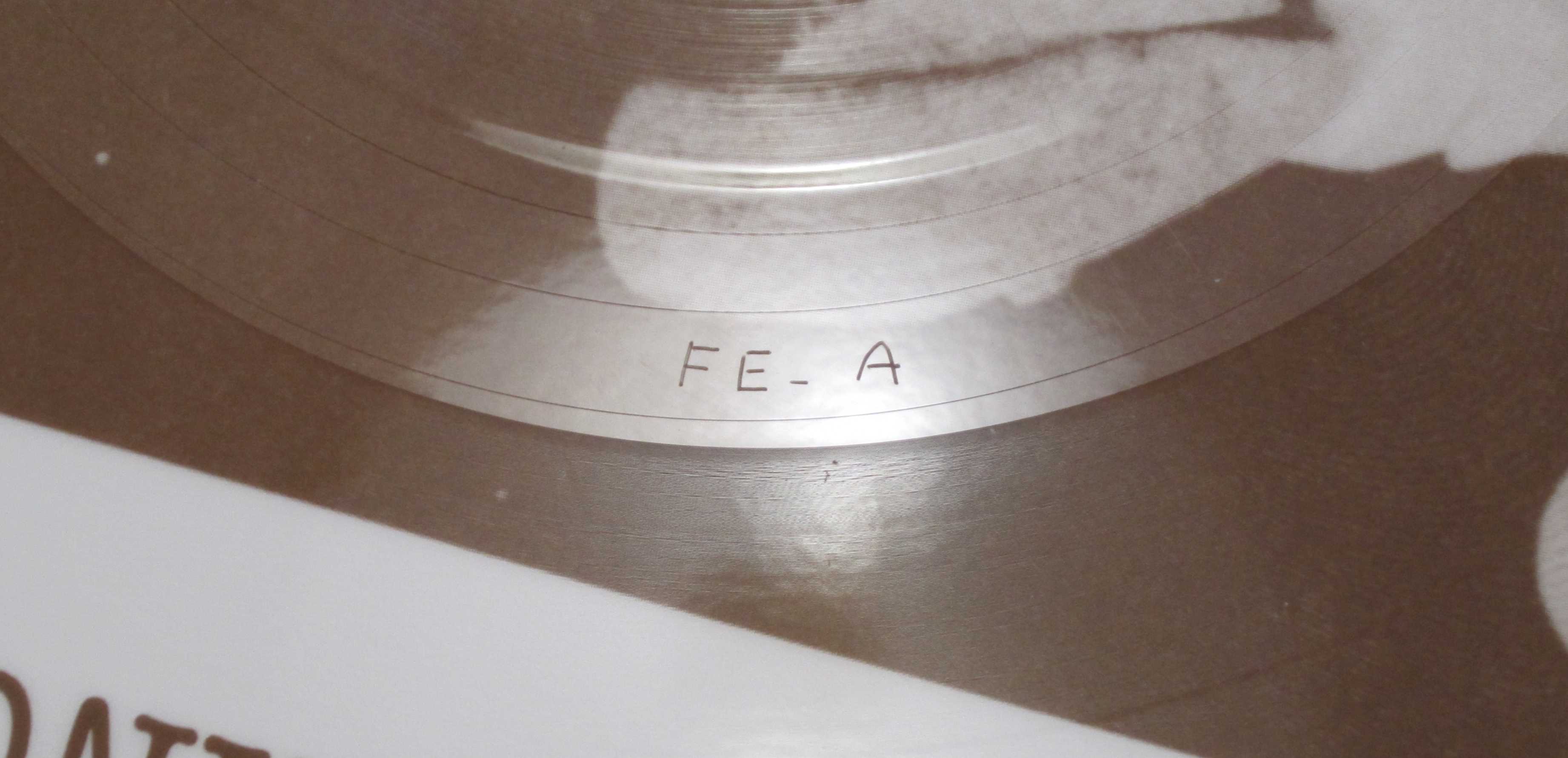 A couple of test pressings were also made to ensure the image was intact and free of tears or defects. Inside the clear sleeve was a white card laminated with the same sticker as the picture.