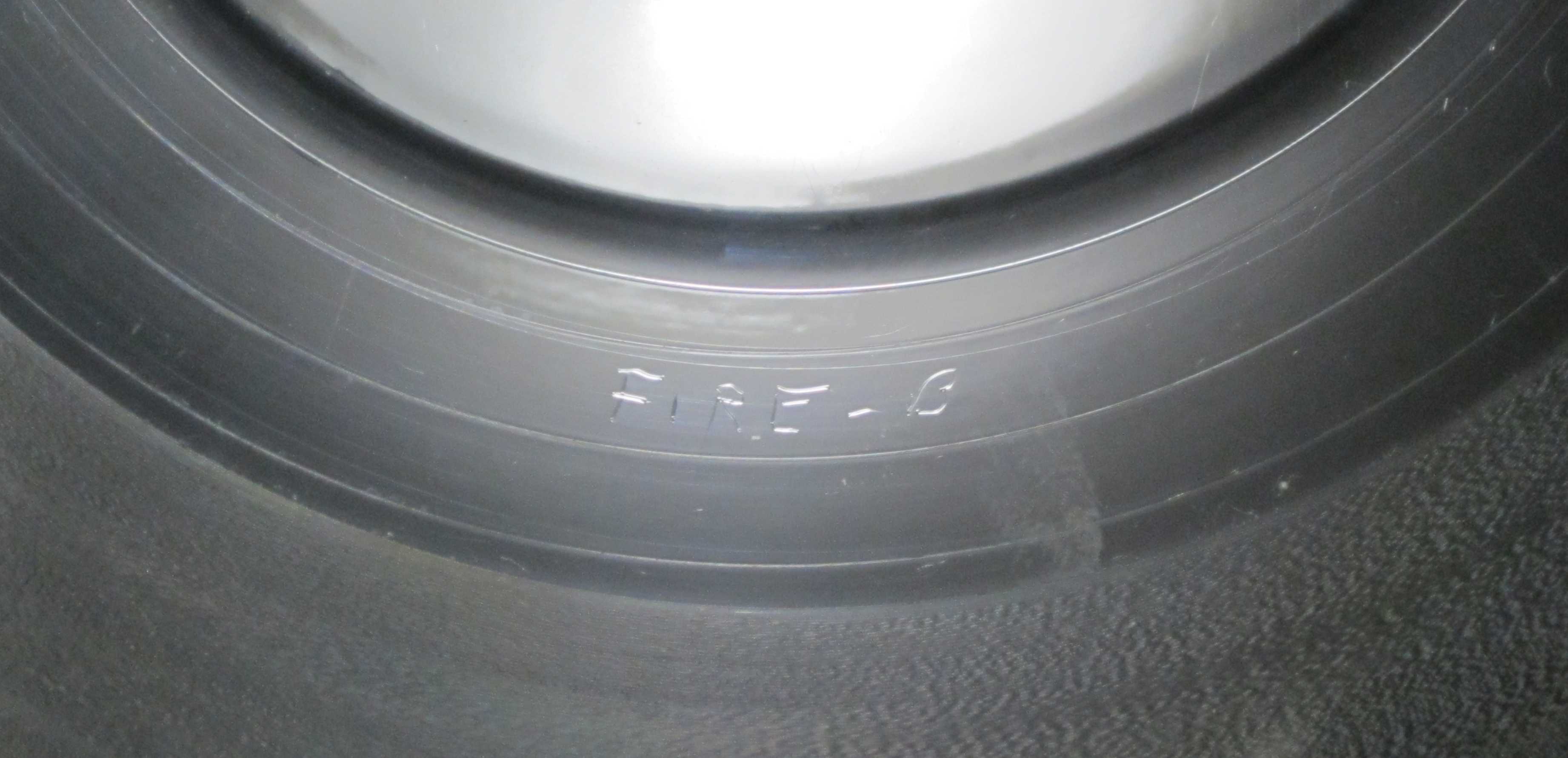 The second reissue was on black vinyl with red labels and titles, the "ROUGE A/B" matrix, then also reissued by TAKRL on picture disc and on black vinyl with various white, pink, small, large inserts, various labels, or no labels , but the rarest version is the one on transparent green vinyl, only 20 copies (approx.) made, as part of a series of titles always with transparent green vinyl’s, with a wraparound cover with anonymous white sleeves, and the "FIRE A/B" matrix.