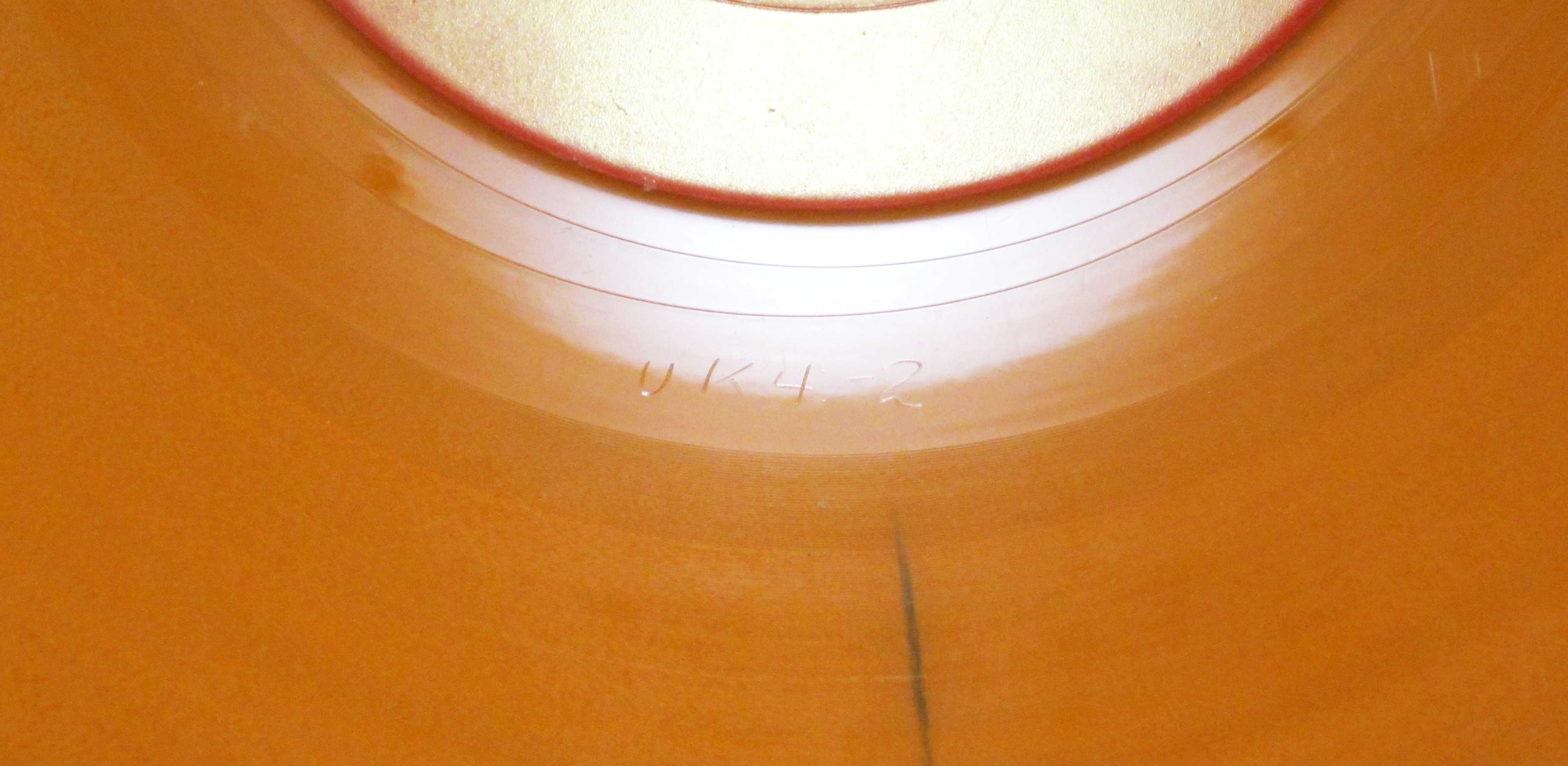 The subsequent pressings were made with the same plates, but on red, blue and orange vinyl.