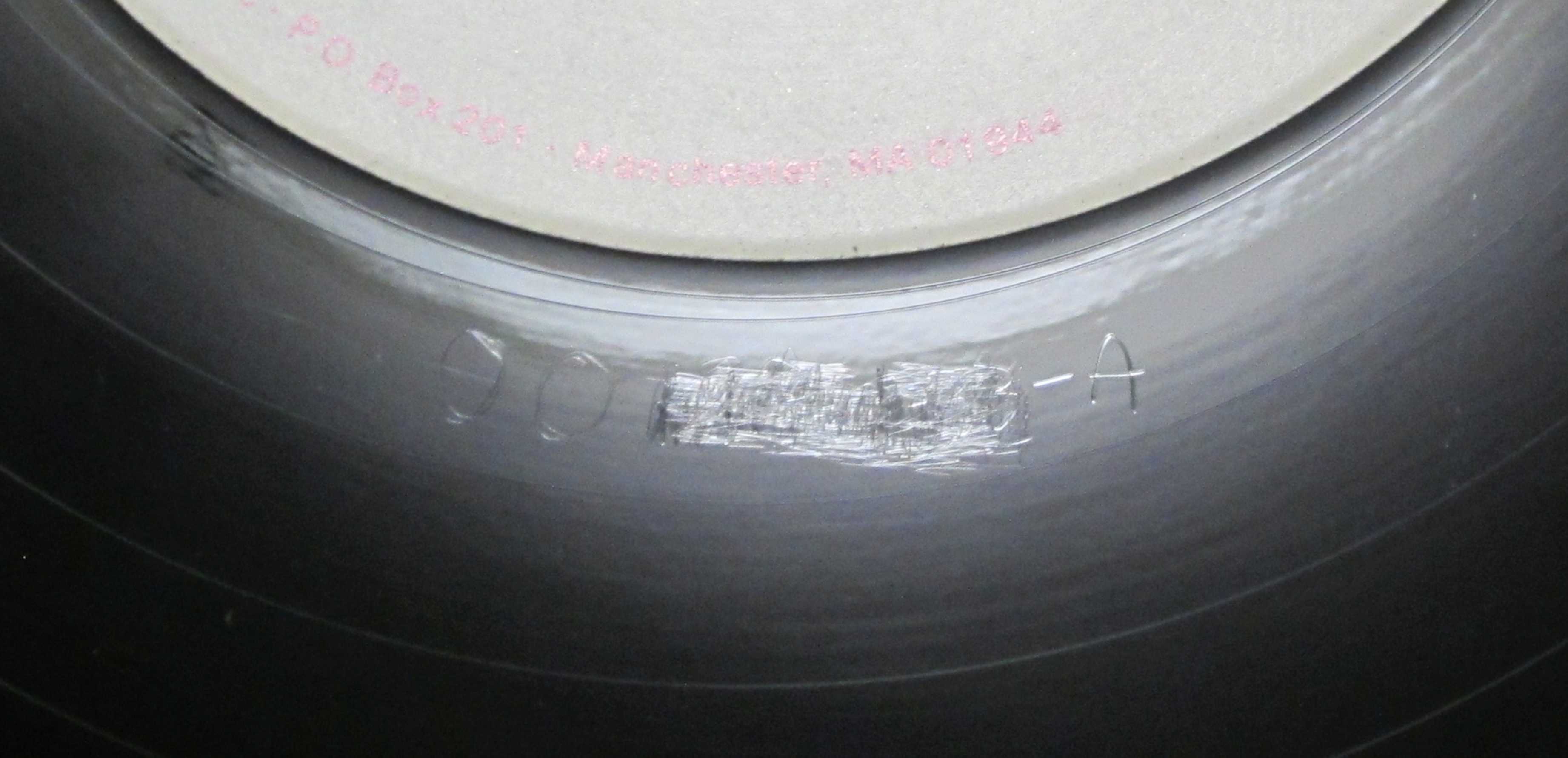 The second reissue was on black vinyl with red labels and titles, the "ROUGE A/B" matrix, then also reissued by TAKRL on picture disc and on black vinyl with various white, pink, small, large inserts, various labels, or no labels , but the rarest version is the one on transparent green vinyl, only 20 copies (approx.) made, as part of a series of titles always with transparent green vinyl’s, with a wraparound cover with anonymous white sleeves, and the "FIRE A/B" matrix.