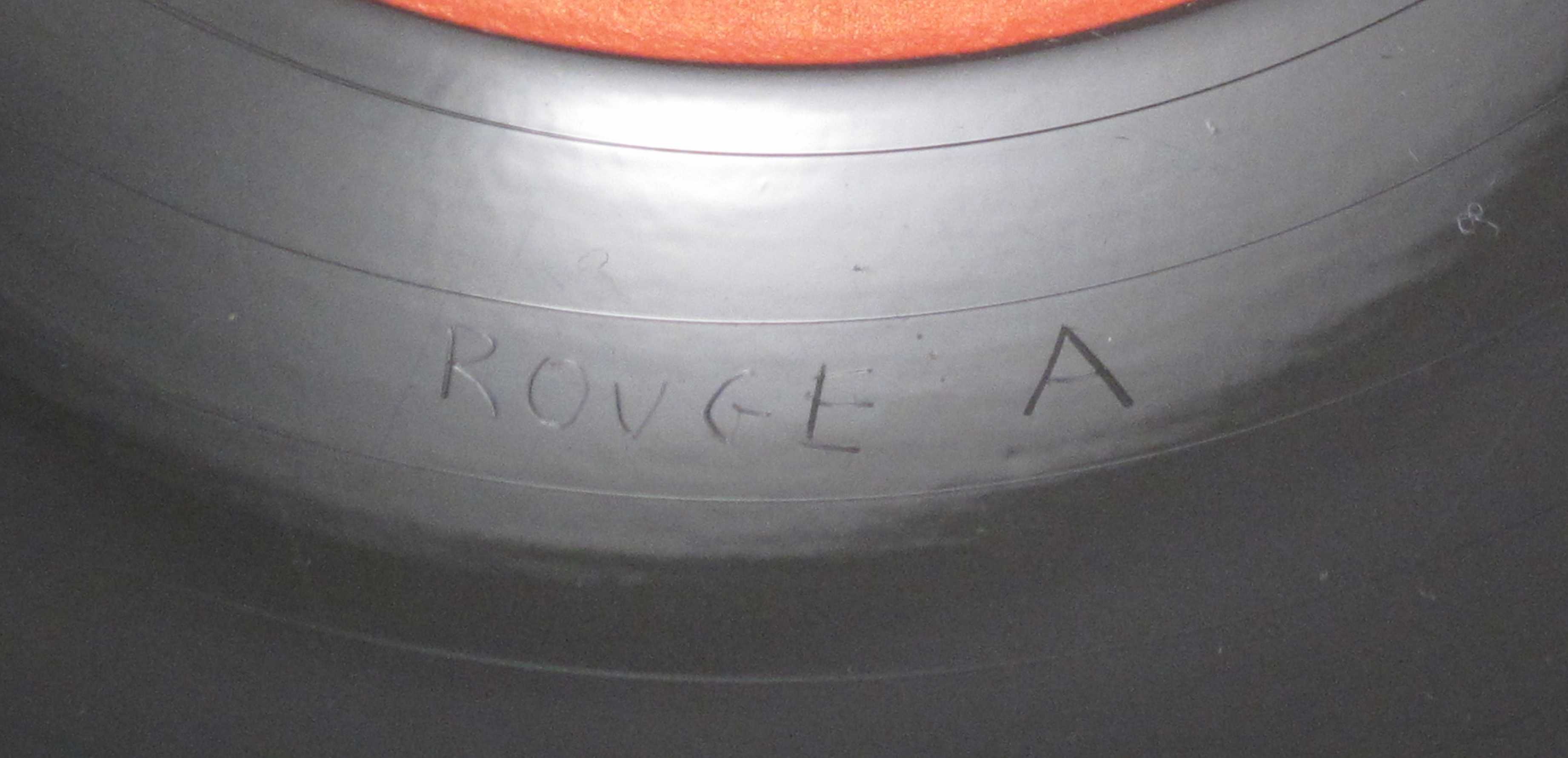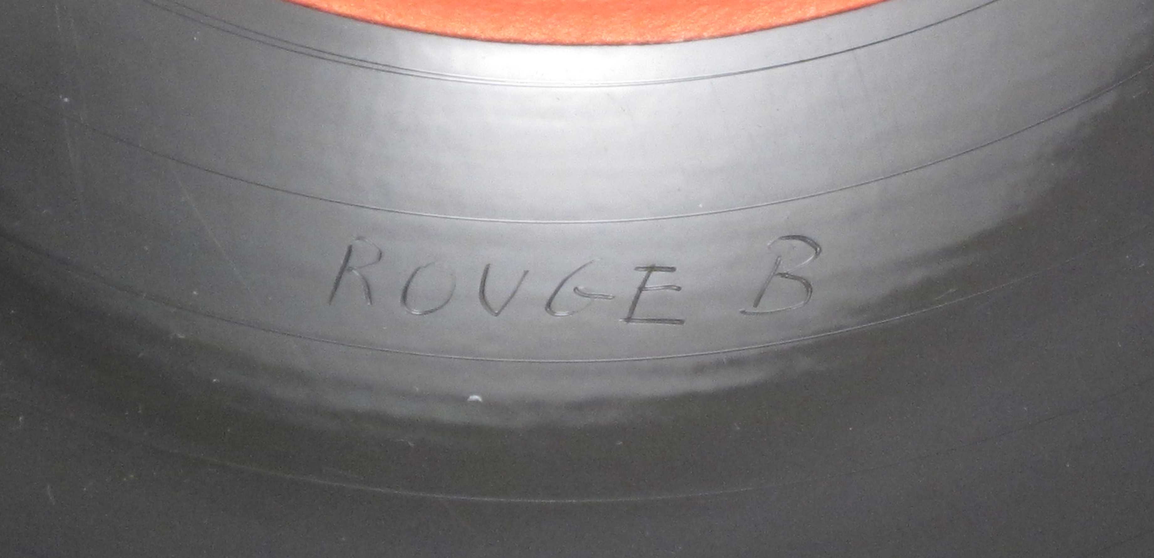 The second reissue was on black vinyl with red labels and titles, the "ROUGE A/B" matrix, then also reissued by TAKRL on picture disc and on black vinyl with various white, pink, small, large inserts, various labels, or no labels , but the rarest version is the one on transparent green vinyl, only 20 copies (approx.) made, as part of a series of titles always with transparent green vinyl’s, with a wraparound cover with anonymous white sleeves, and the "FIRE A/B" matrix.