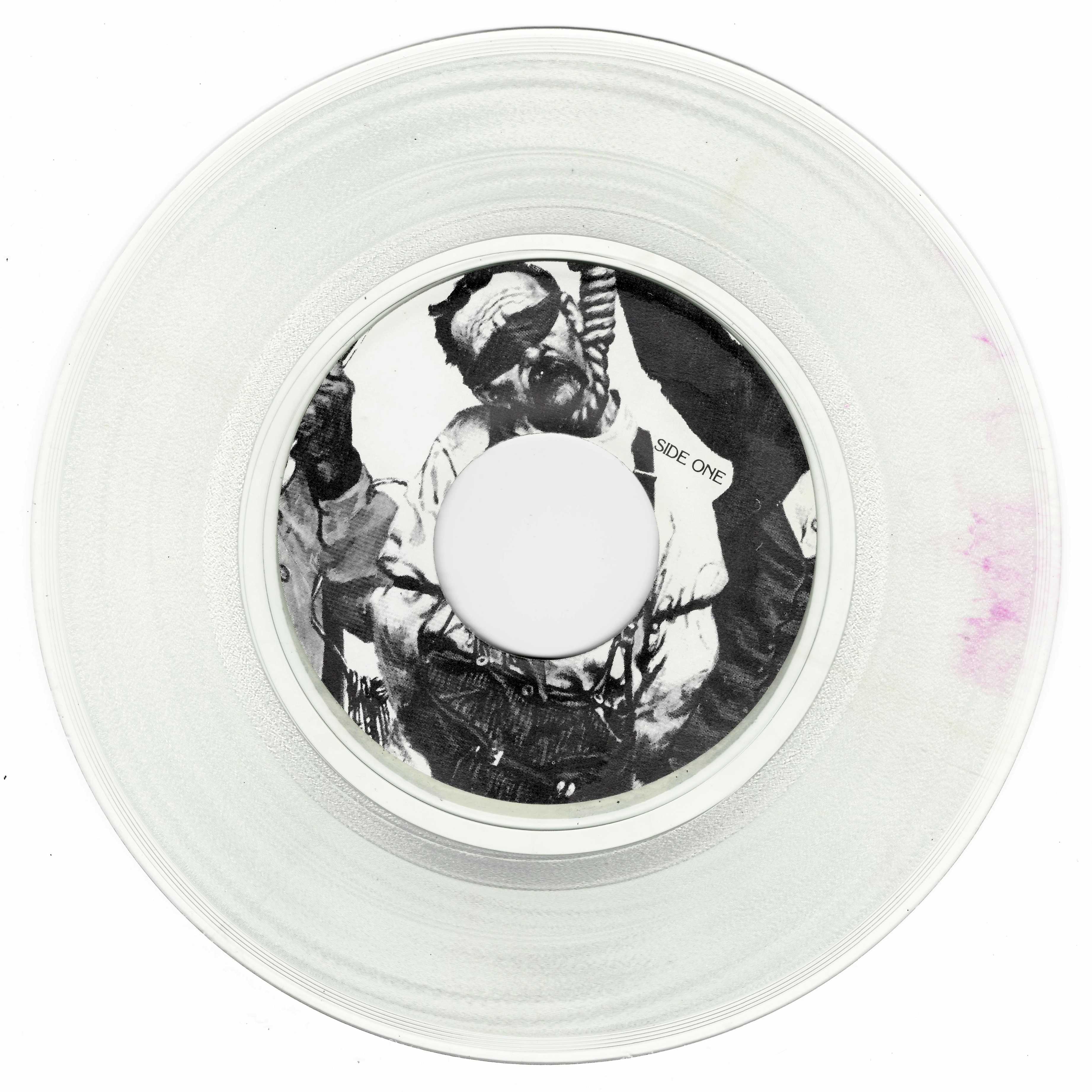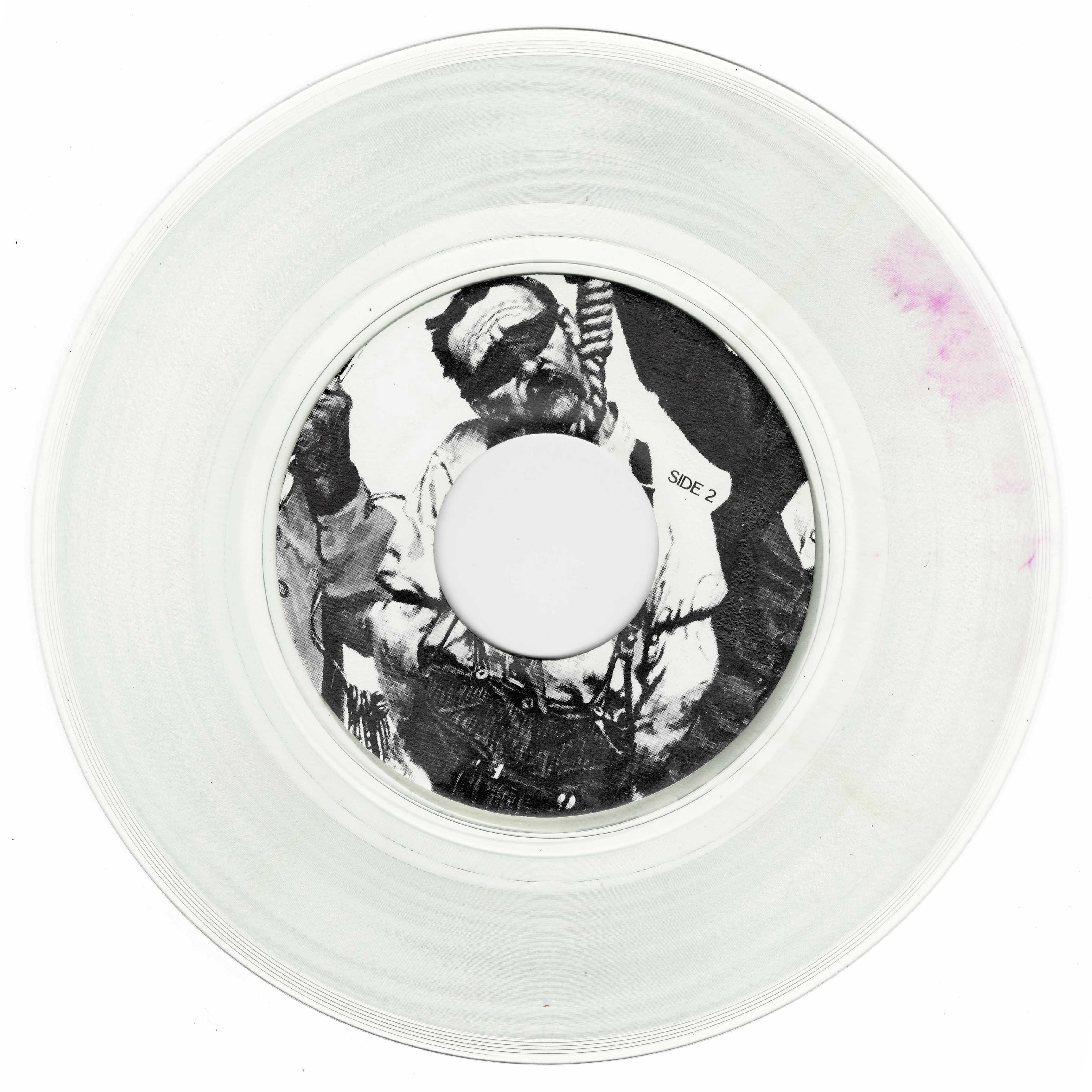 This 7-inch vinyl is part of a series of six 7-inch vinyl records. It could be a Hangman Records release given the custom labels on the vinyl records.