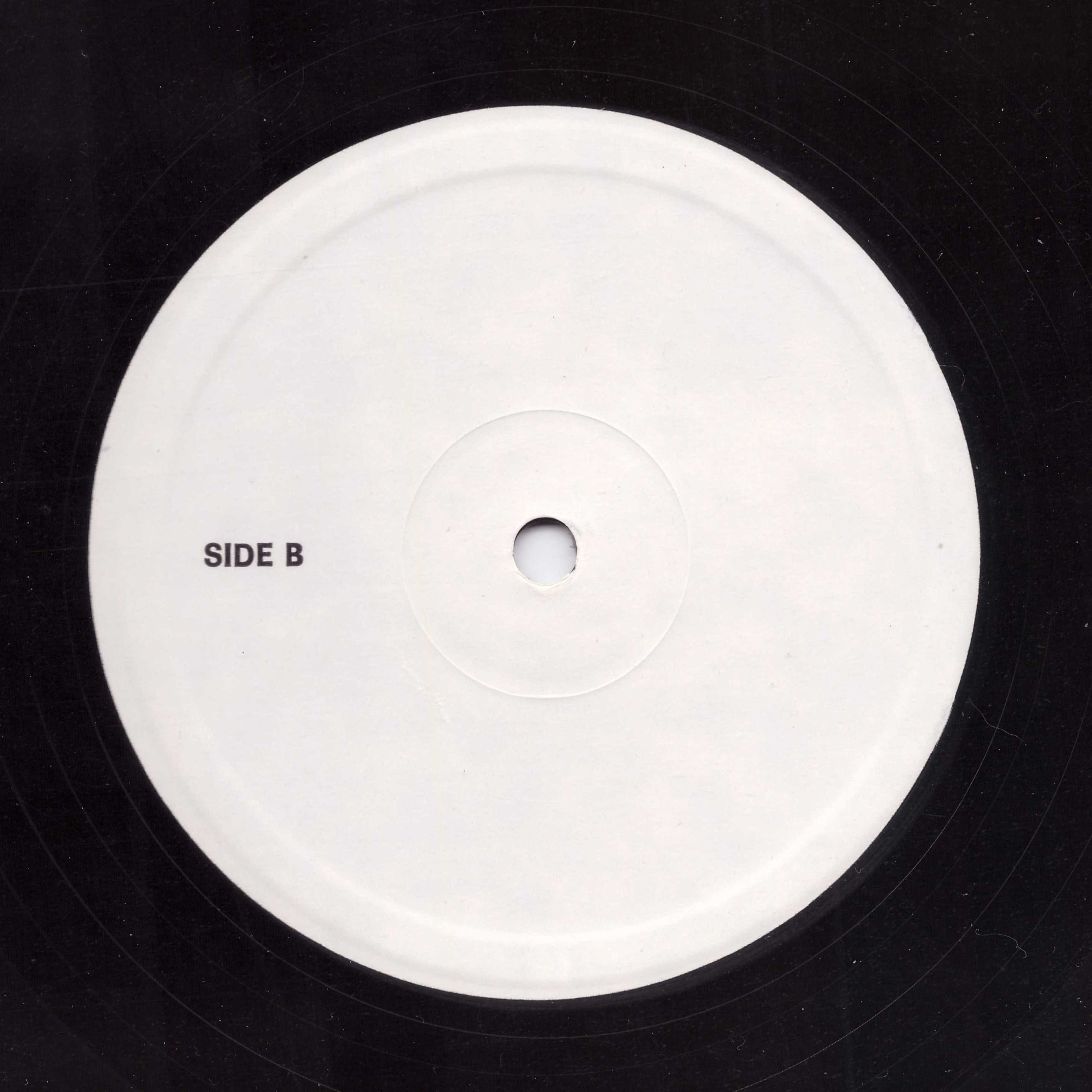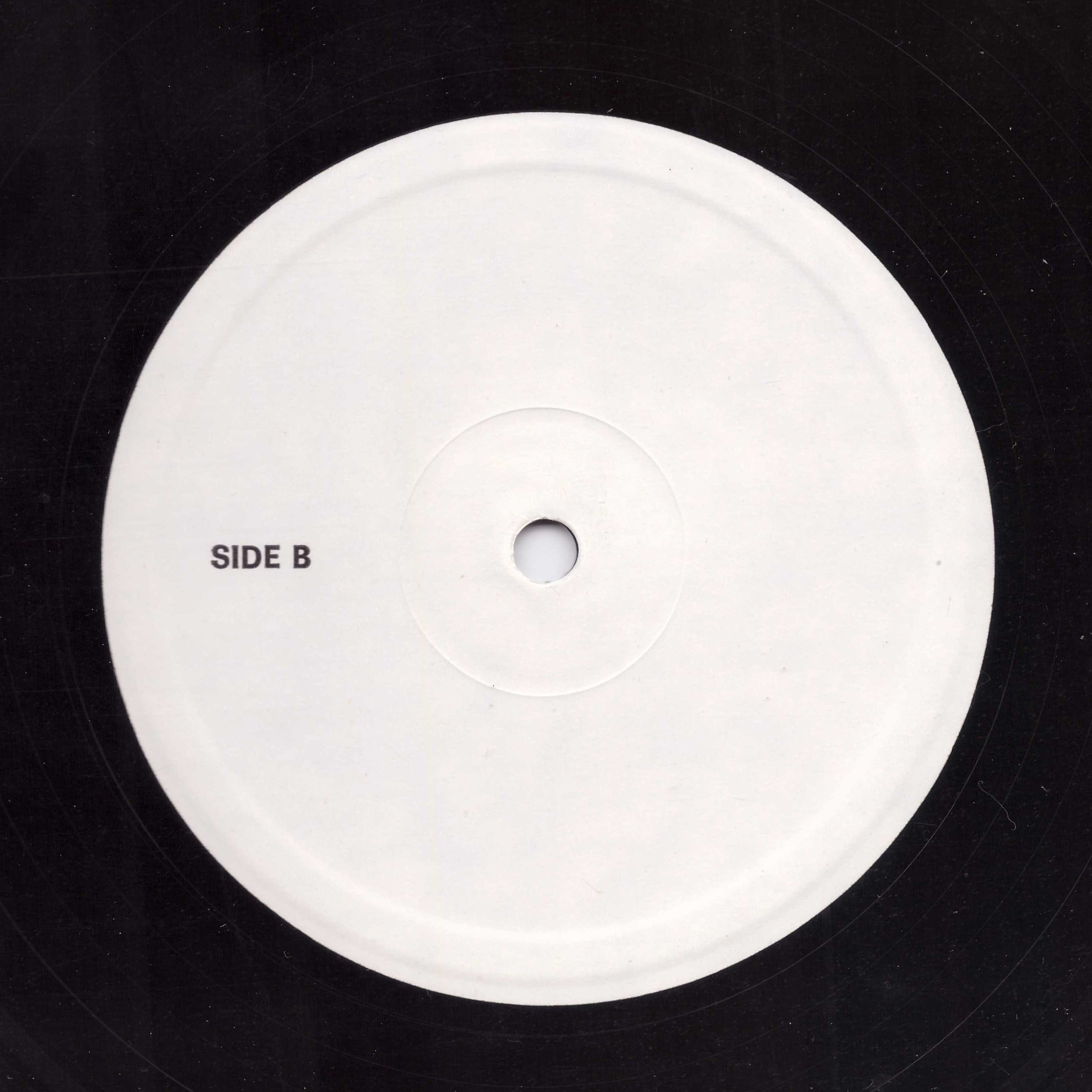 Both parts are produced on black vinyl with anonymous white labels with "Side A" and "Side B" printed on.