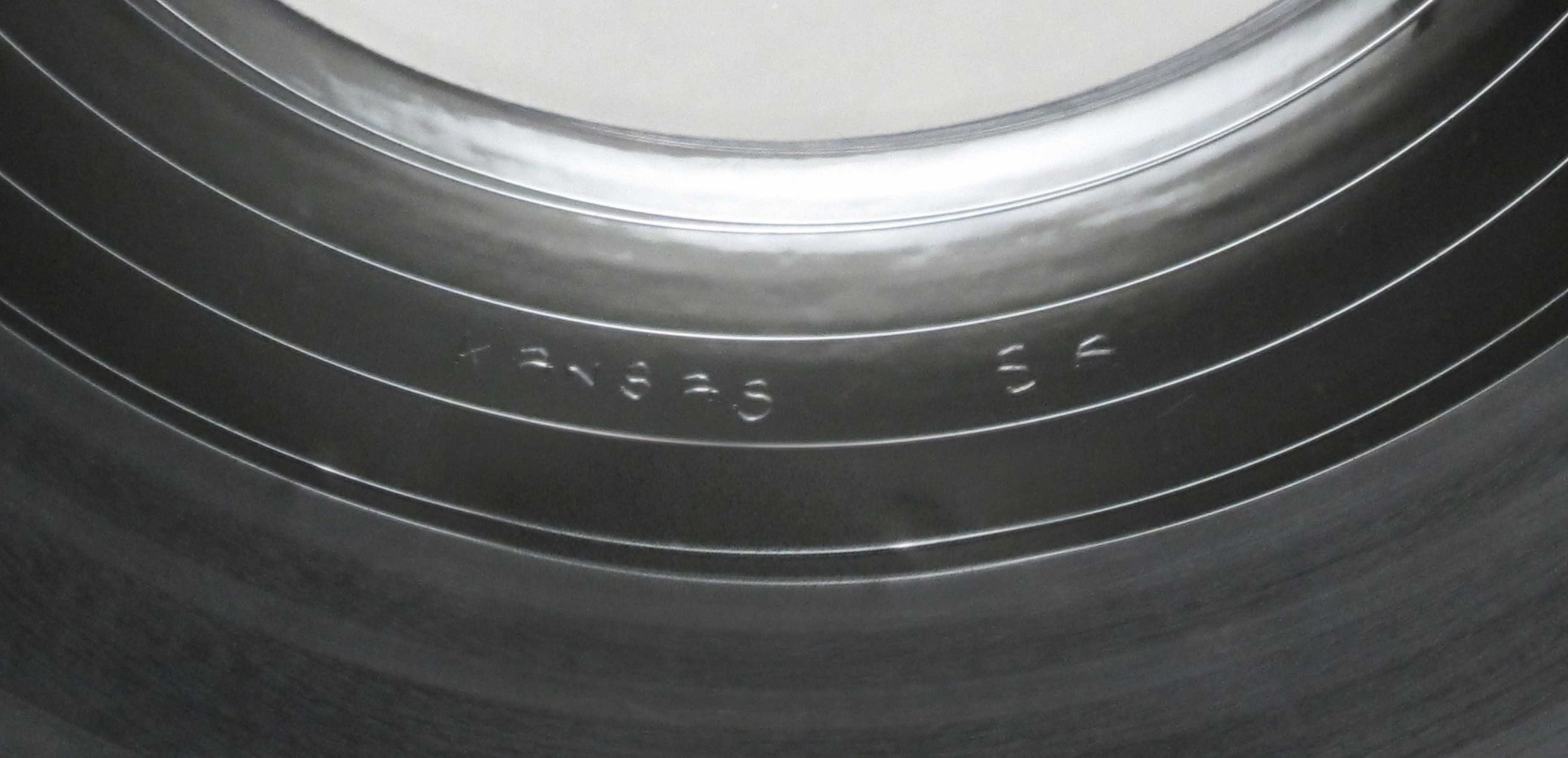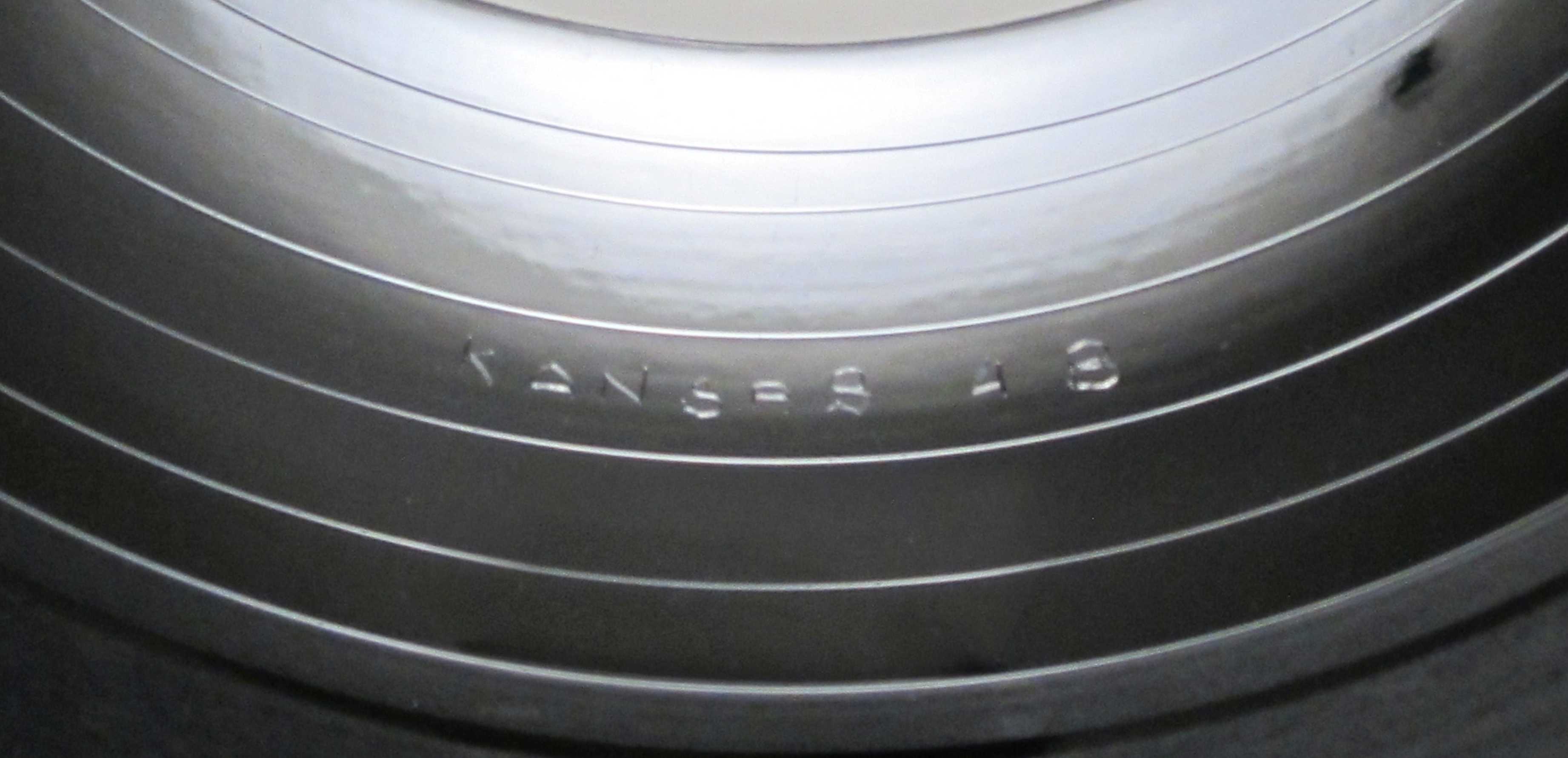 They were thinking of alternating yellow and green vinyl, with 5 white covers printed with a large b/w image, and a circle with the vinyl number on the front, on the back, the boot title "Kansas - Live In Kansas City - Kemper Arena 11-19-1984", the titles of the songs and a small image always in b/w.