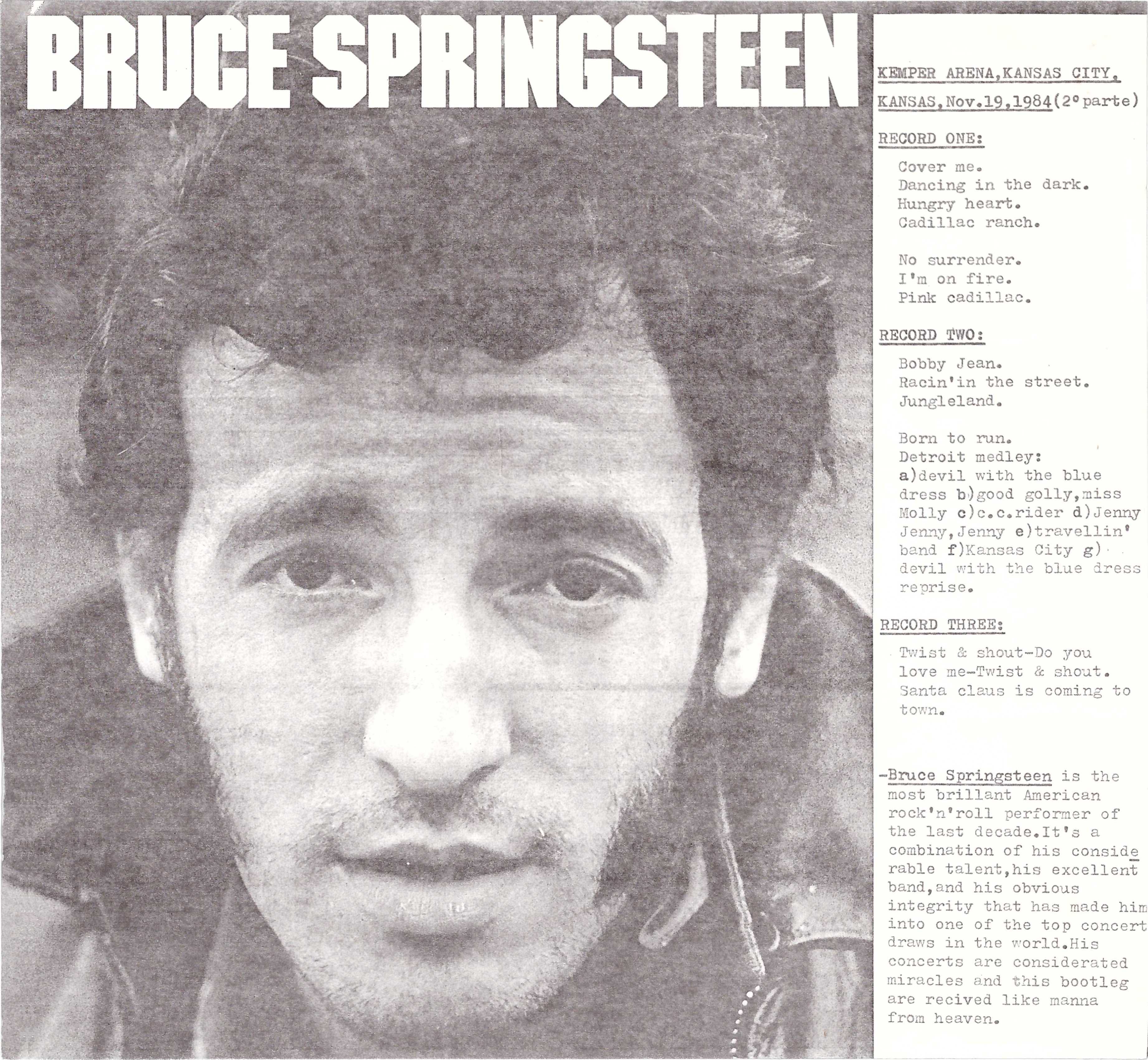 In some boxes it is also possible to find a sheet with presumably false discographic addresses written on it, or/and the two posters of Bruce's caricature (certainly advanced), normally included in the limited edition boot box set "Live In Jack Murphy Center Murfreesboro, TNN December 9, 1984".