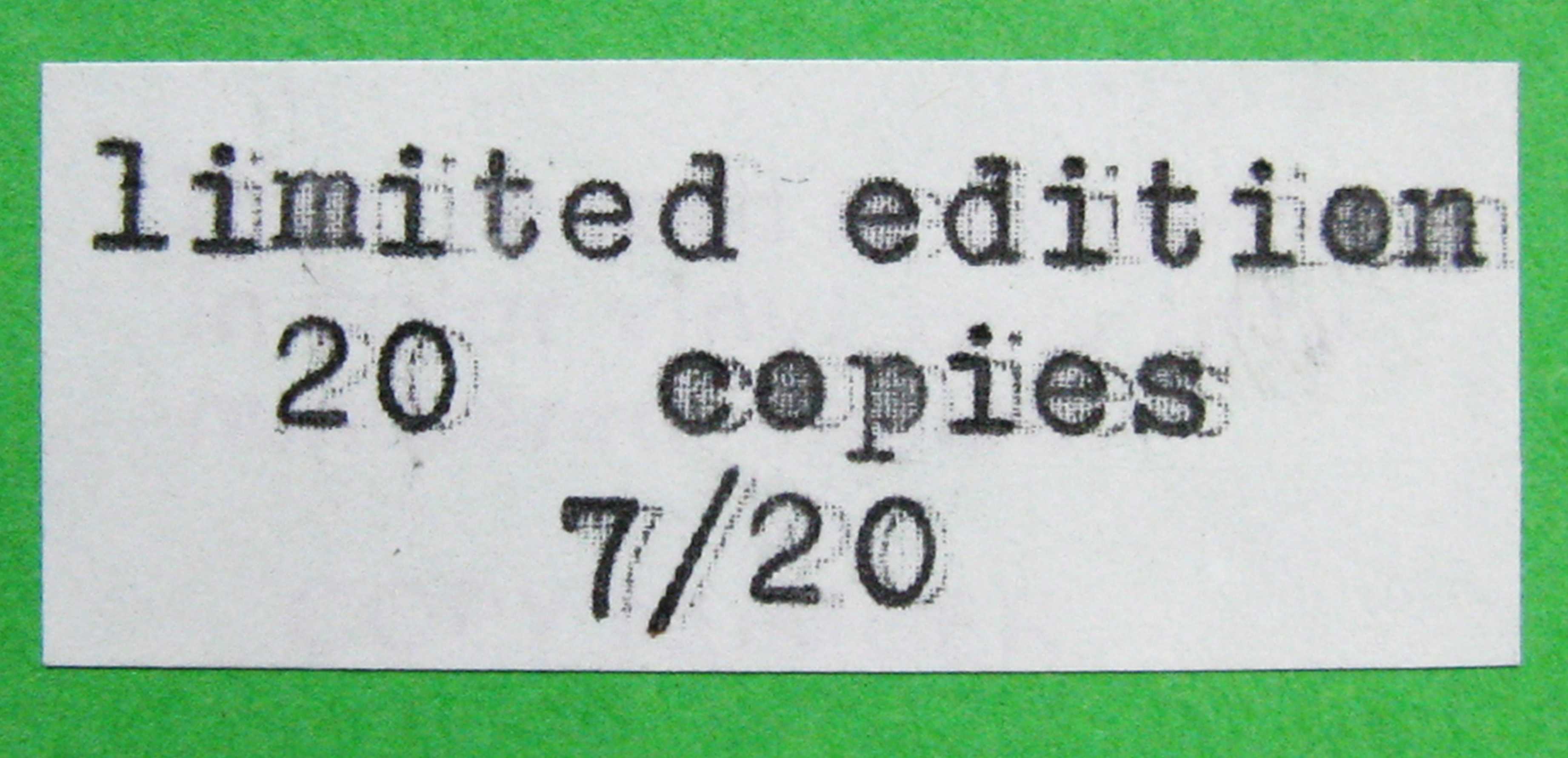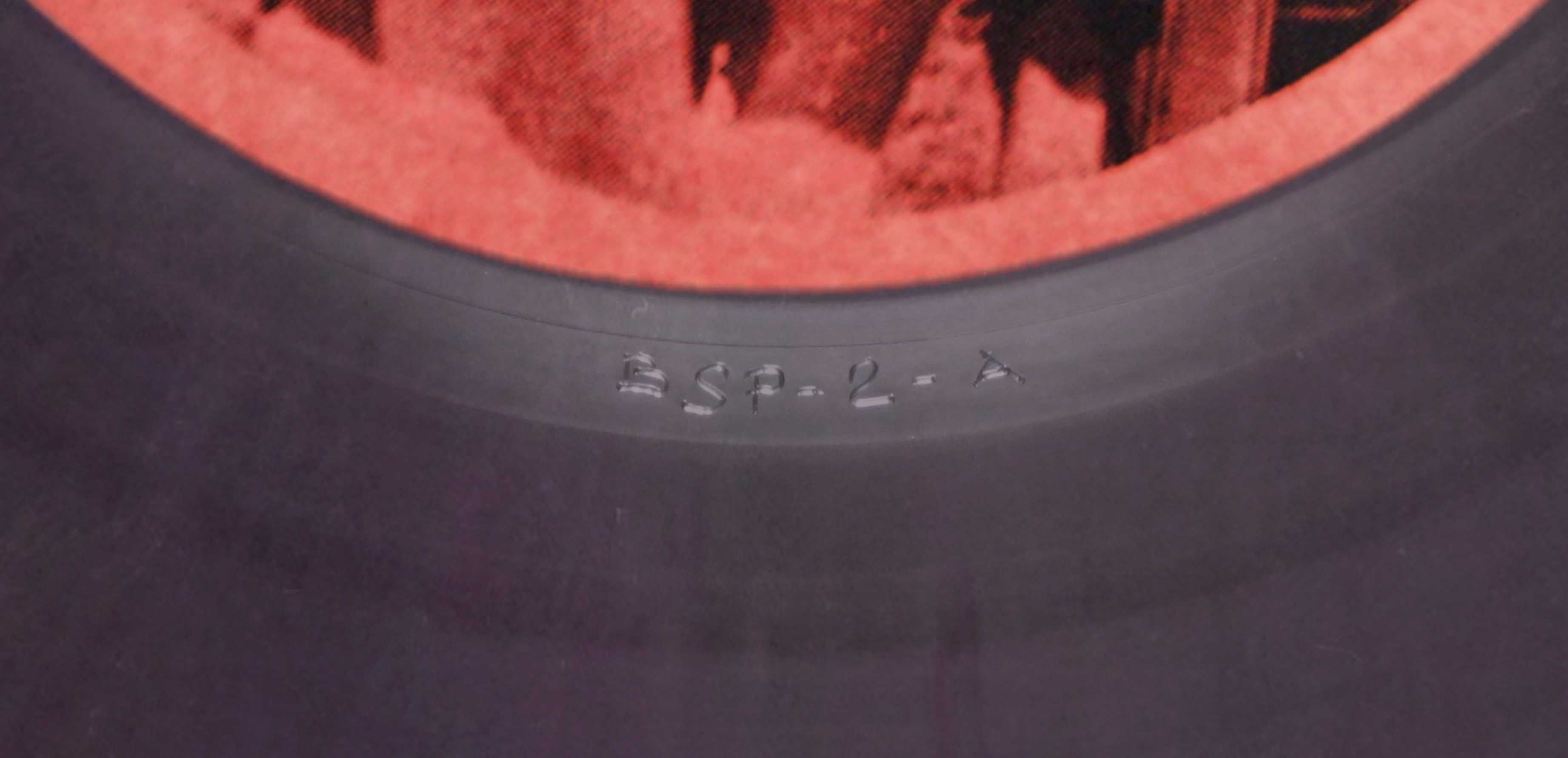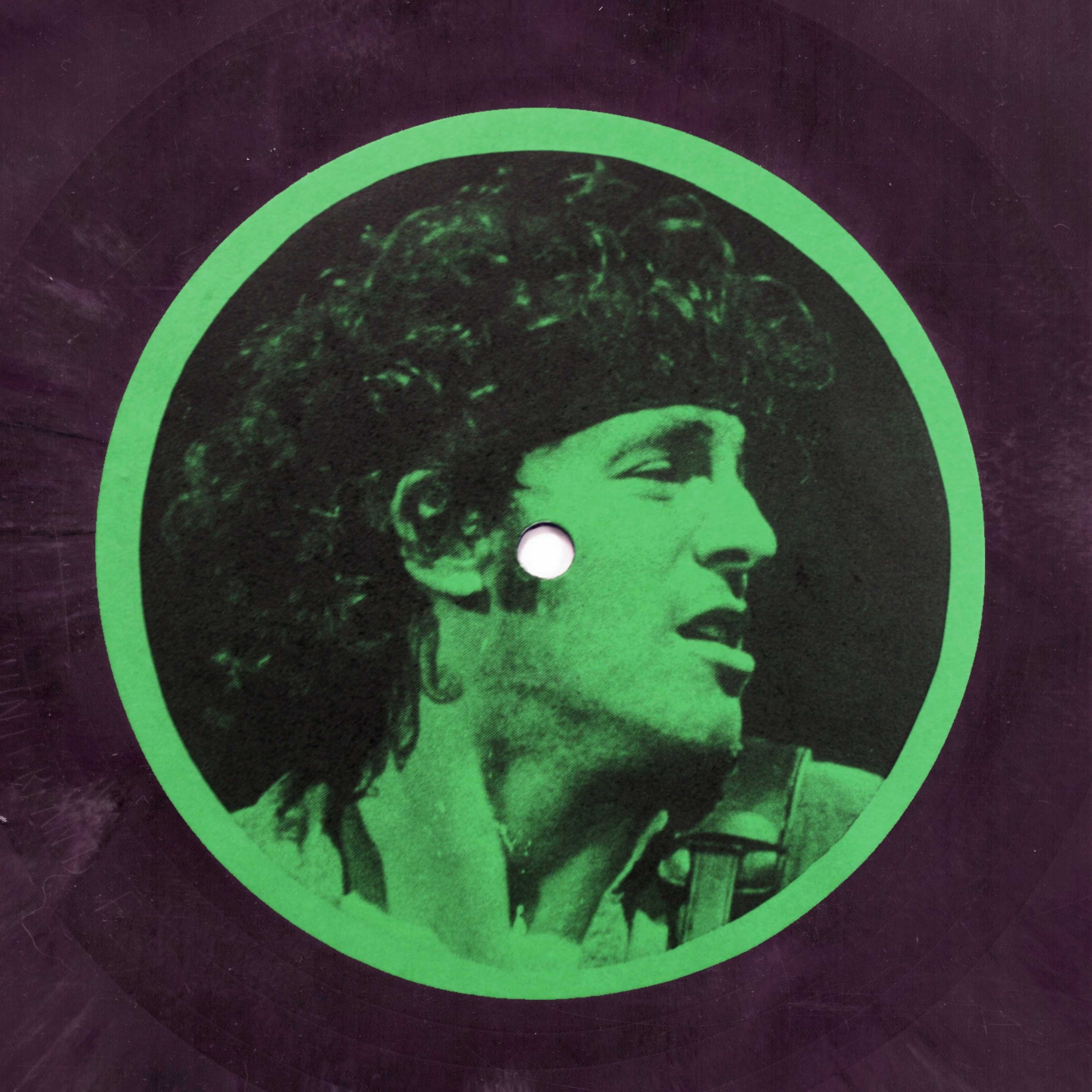 In a plain white sleeve, the original pressing of this live compilation is on black vinyl, with a large yellow insert and plain white labels. The second pressing is on dark green vinyl and an orange insert glued to the plain white sleeve, and plain white labels. The third edition, only 20 copies pressed, on multicolour vinyl, with a green insert with a numbered sticker glued on, and labels with Bruce's face, red on side A and green on side B.