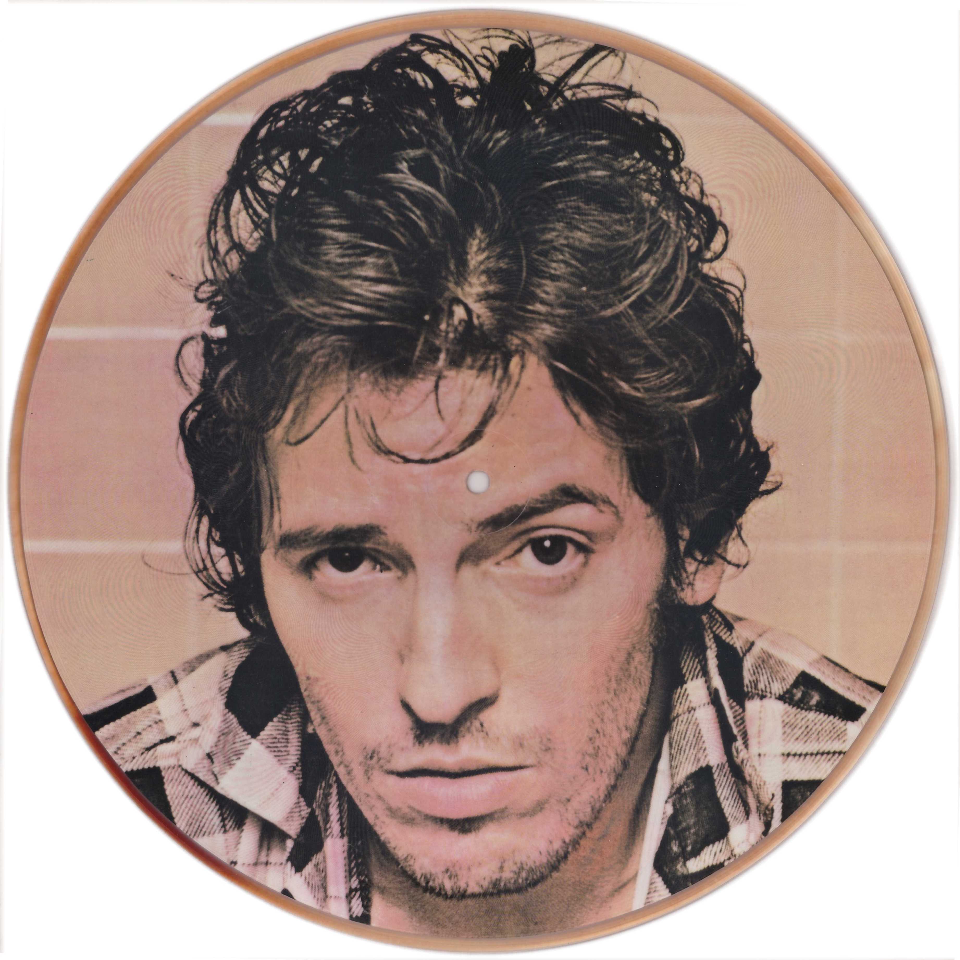 On the front cover is a large photo of Bruce in a checked shirt, on the back completely yellow with the LP titles.