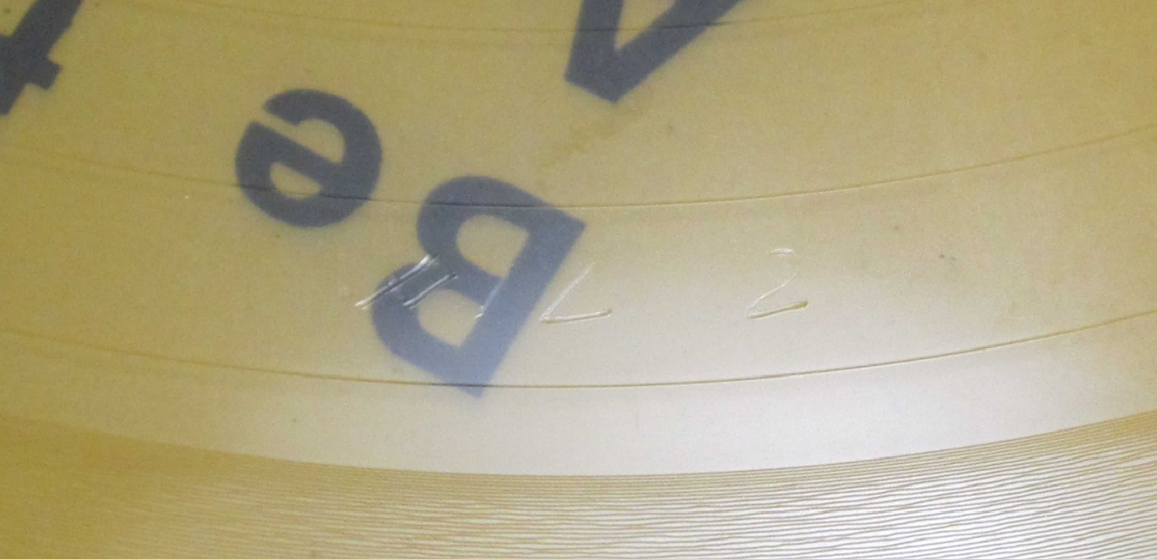 Unfortunately, as time passed, and humidity, these once perfectly transparent Picture Discs and also the TEST PRESSINGs became amber, darkening the images, especially those on the back.
