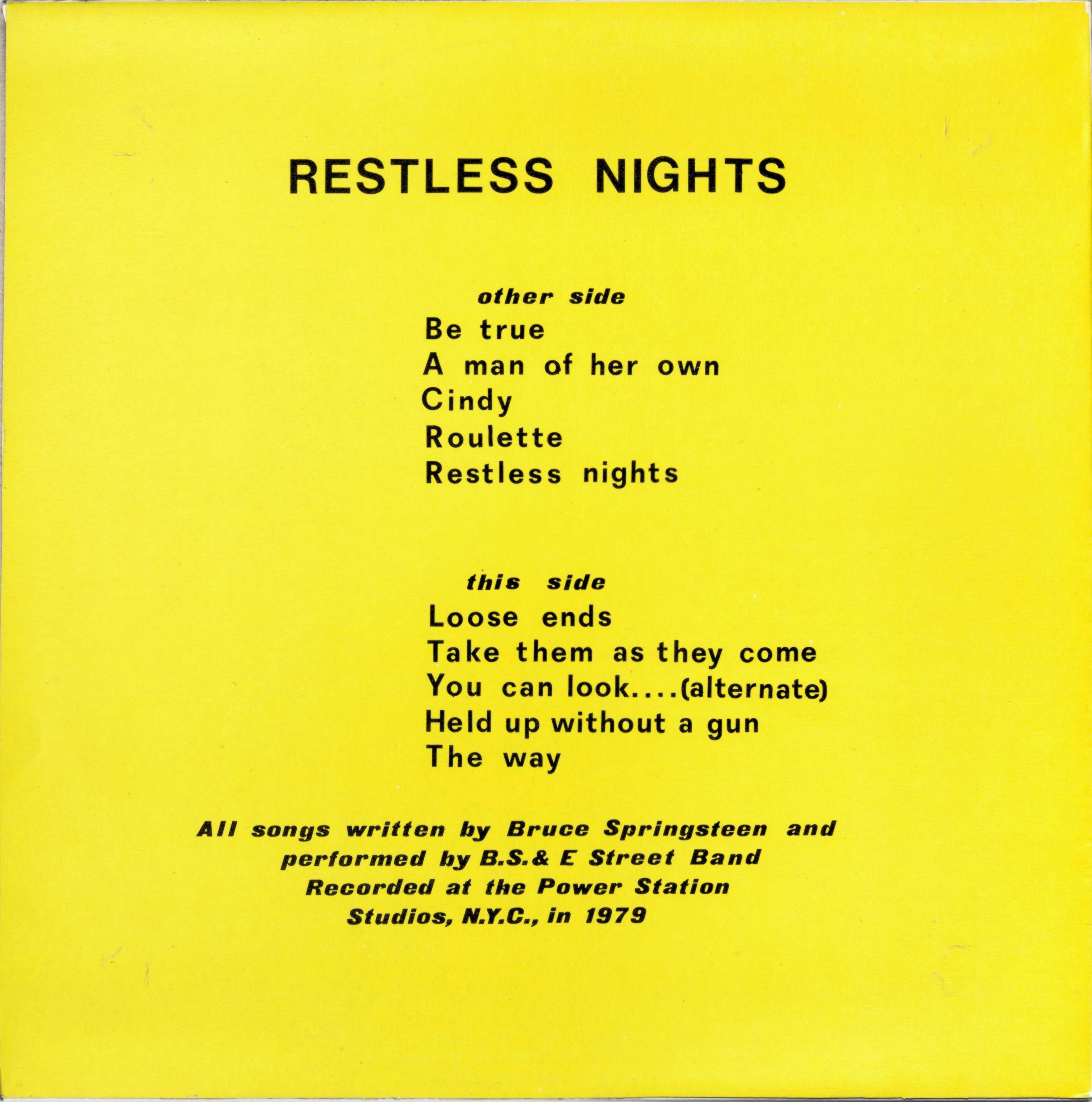 "Restless Nights" is a collection of studio songs that were excluded from the album The River.