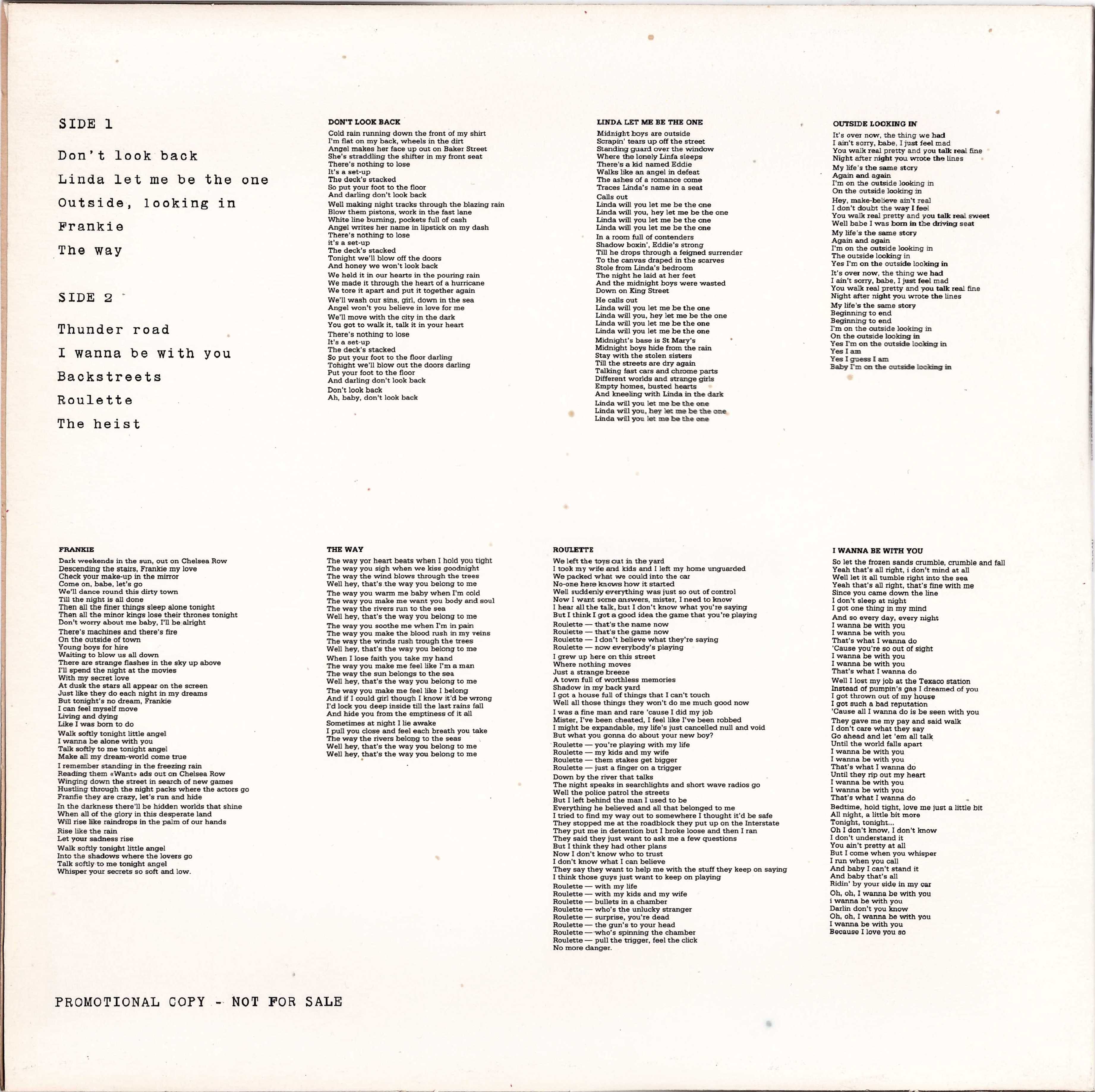 Released in the late eighties, in a laminated cover with a colour photo of Bruce and Clarence with a large white outline, and all the lyrics of the songs on the back.