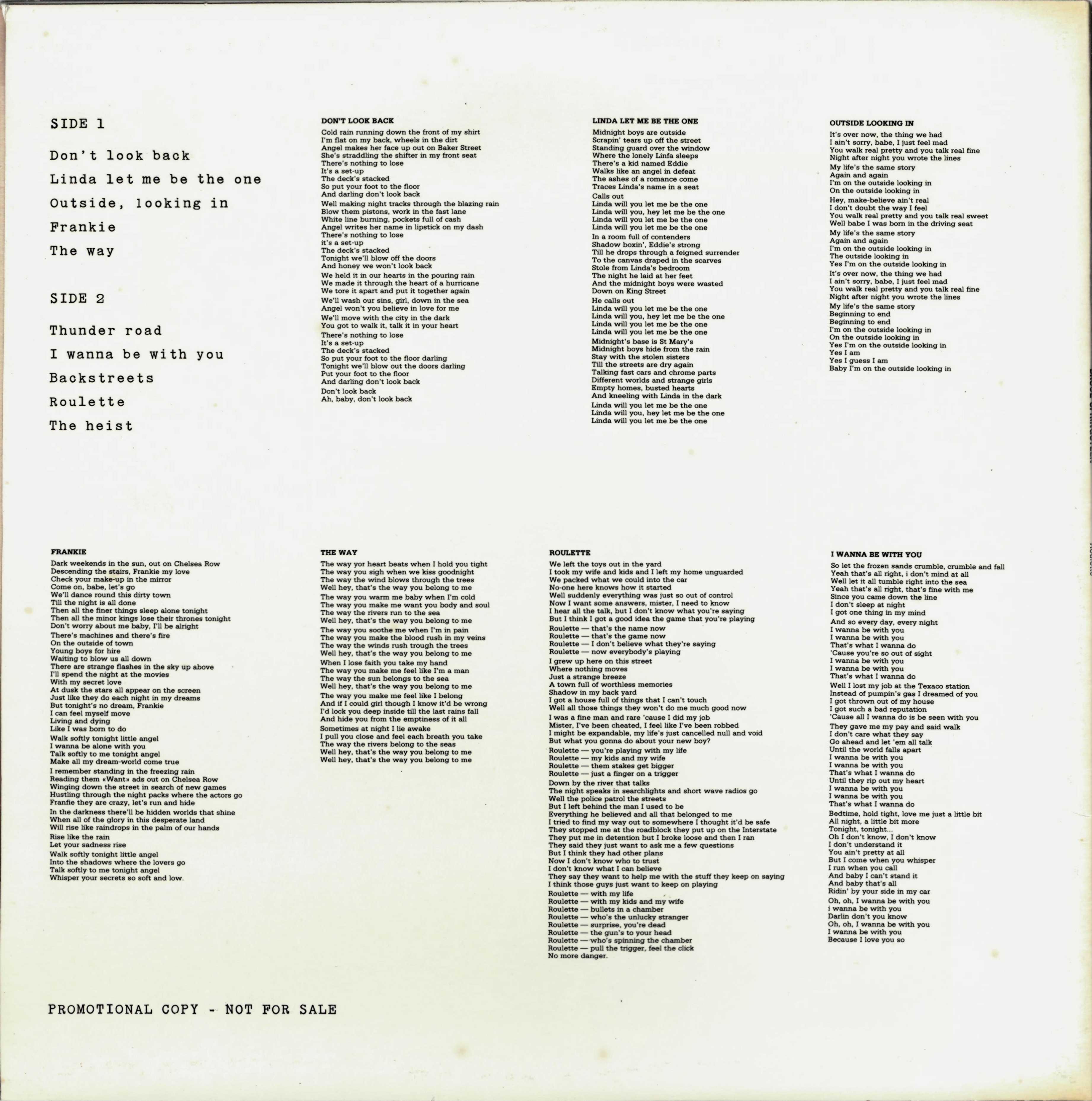 Released in the late eighties, in a laminated cover with a colour photo of Bruce and Clarence with a large white outline, and all the lyrics of the songs on the back.