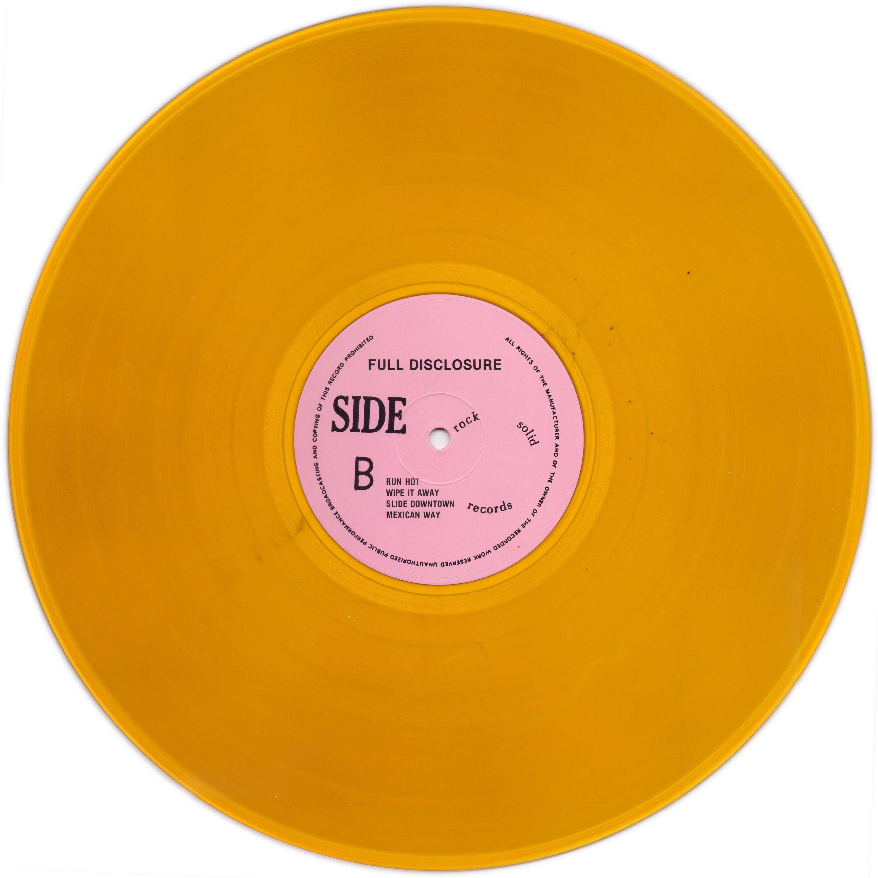 It was reissued with the same cover and insert with gold "Rock Solid Records" labels, but also in a limited edition with yellow vinyl and pink Rock Solid Records labels.
